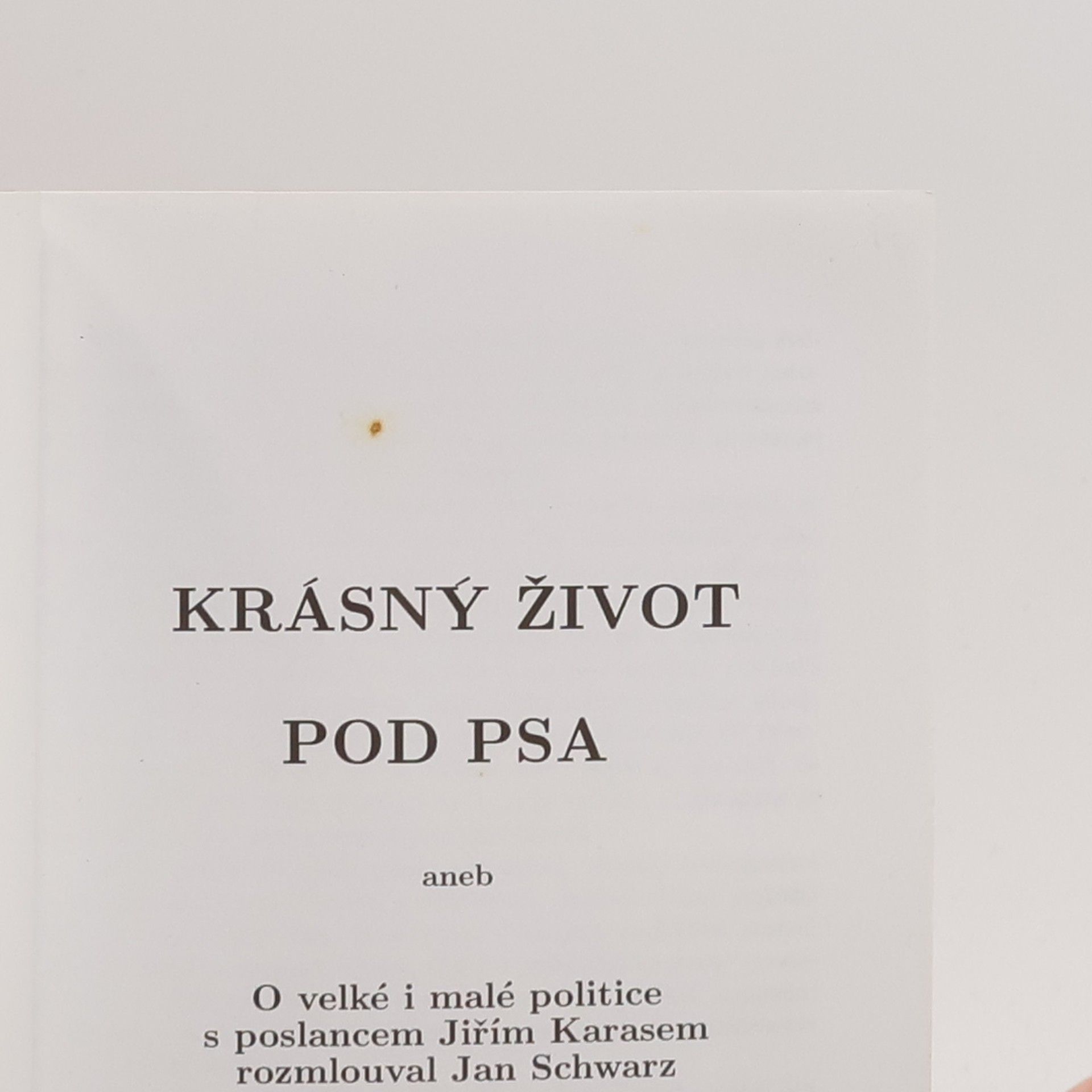 Krásný život pod psa, aneb, O velké i malé politice, Jan Schwarz, Jiří Karas