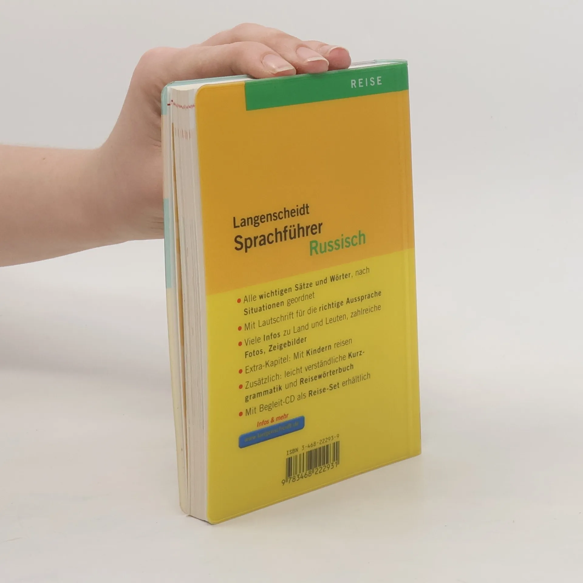Für alle wichtigen Situationen auf der Reise Mit dem Langenscheidt Sprachführer Russisch sind Verständigungsprobleme im Urlaub und auf Reisen kein Thema mehr, denn er macht einfache Kommunikation auch ohne russische Sprachkenntnisse möglich. Die gängigen Themen, die Ihnen auf Reisen begegnen, werden jeweils intensiv in einem Kapitel behandelt – vorgefertigte Mustersätze mit Lautschriftangabe helfen Ihnen, praktisch jede Situation zu meistern. Die Formulierungen im Sprachführer Russisch sind sowohl in kyrillischer Schrift zum Zeigen als auch in Lautschrift für die richtige Aussprache angegeben. * Alle wichtigen Sätze und Wörter zu den Themen Erste Kontakte, Übernachten, Unterwegs, Reisen mit Kindern, Behinderte, Kommunikation, Essen und Trinken, Einkaufen, Sport und Entspannung, Kultur und Nachtleben, Behörden, Gesundheit, Die Zeit, Wetter und Umwelt * Durchgängig mit Lautschrift * Übersichtliche Gestaltung mit vielen Farbfotos * Topaktuelle Infos zu Land und Leuten * Integrierte russische Kurzgrammatik * Mit Reisewörterbuch Deutsch-Russisch