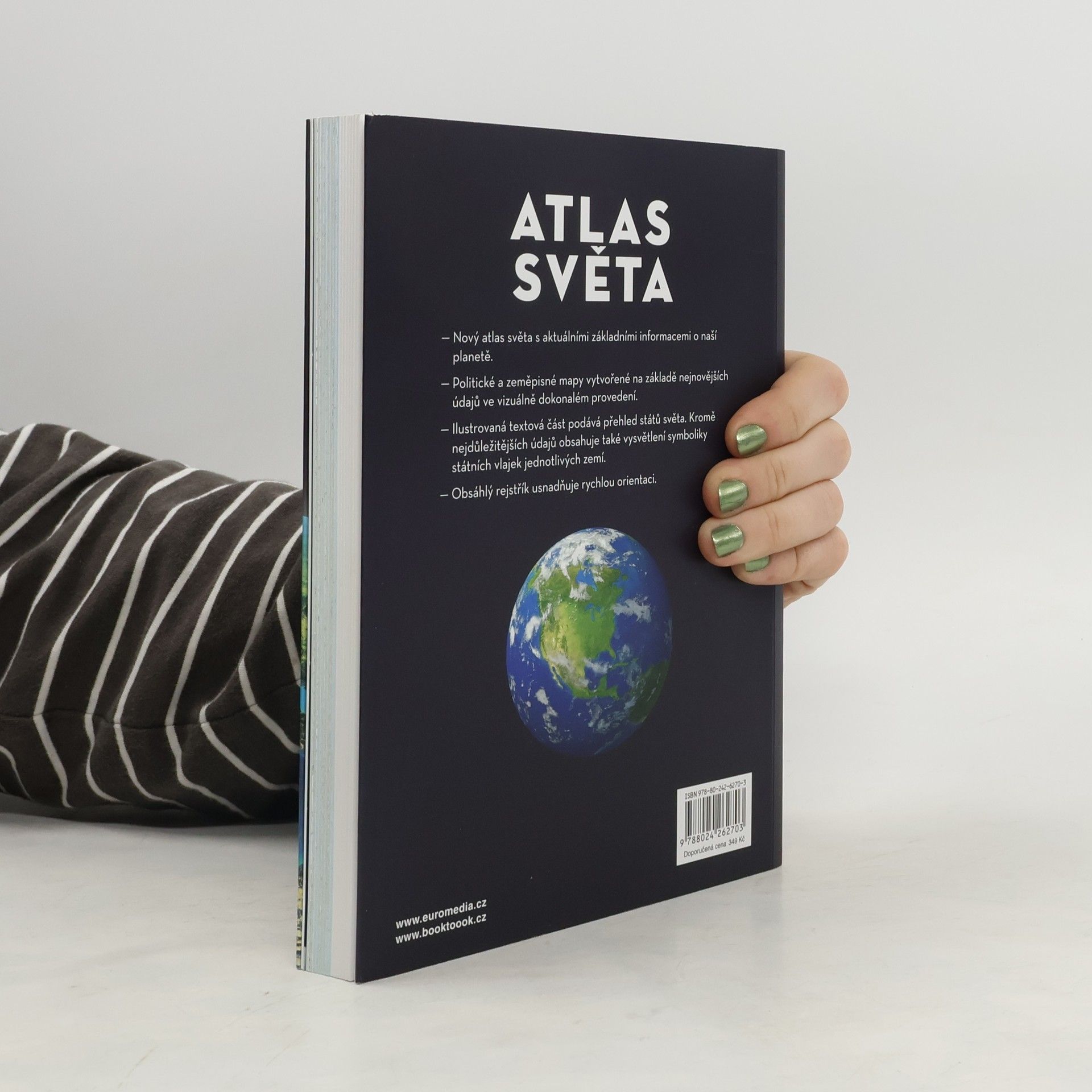 Přehledný a praktický příruční atlas světa s aktuálními ověřenými informacemi o naší planetě nabízí politické a fyzické mapy světa ve vynikajícím rozlišení. Ilustrovaná textová část je věnovaná státům světa a kromě nejdůležitějších informací o jednotlivých zemích obsahuje i státní vlajky. Podrobný rejstřík pomáhá při rychlé orientaci v mapách.