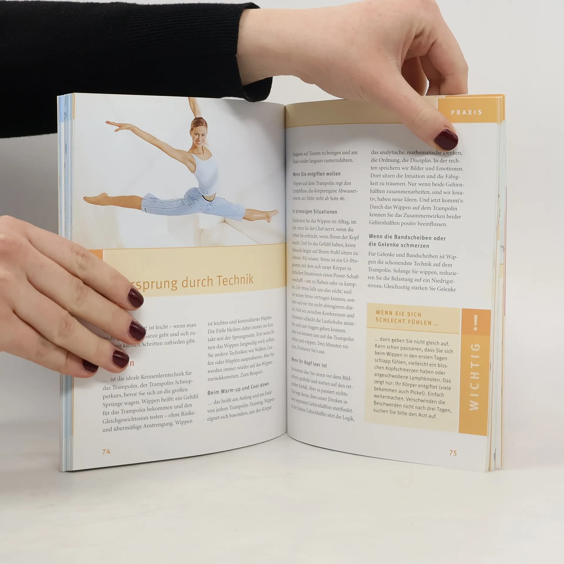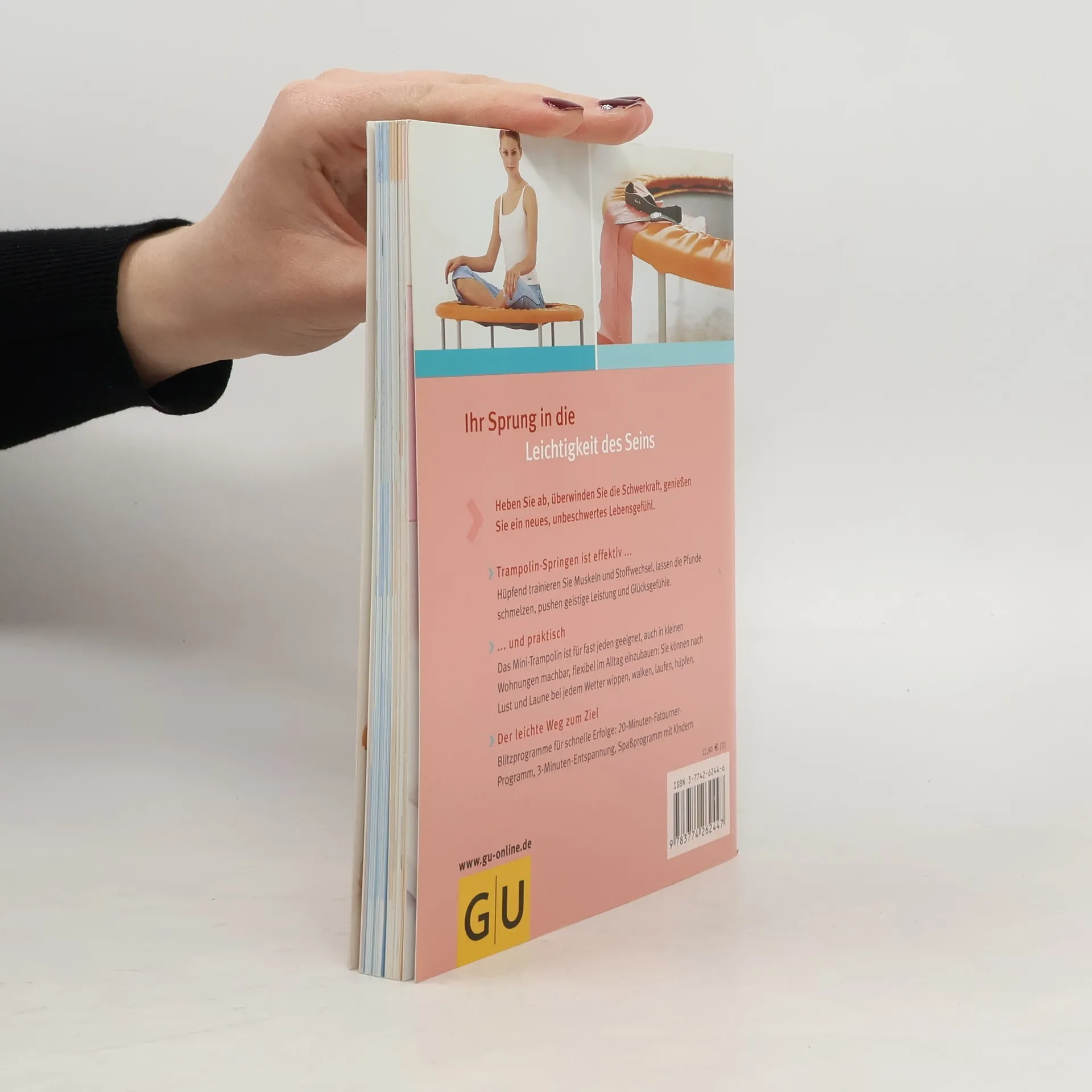 Heben Sie ab, überwinden Sie die Schwerkraft und geniessen Sie eine neue Leichtigkeit in Ihrem Leben. Trampolin-Springen ist höchst effektiv: es trainiert jeden Muskel, regt Stoffwechsel und Fettverbrennung an, pusht geistige Leistung und Glückshormone. Und es ist praktisch: für fast jeden geeignet, auch in kleinen Wohnungen machbar, flexibel im Alltag zu integrieren. Dieser GU-Ratgeber zeigt, wie man fröhlich hüpfend Pfunde abwerfen, die Figur straffen und Glückshormone produzieren kann. Mit 20-Minuten-Fatburner-Programm und speziellem Training für die Problemzonen.