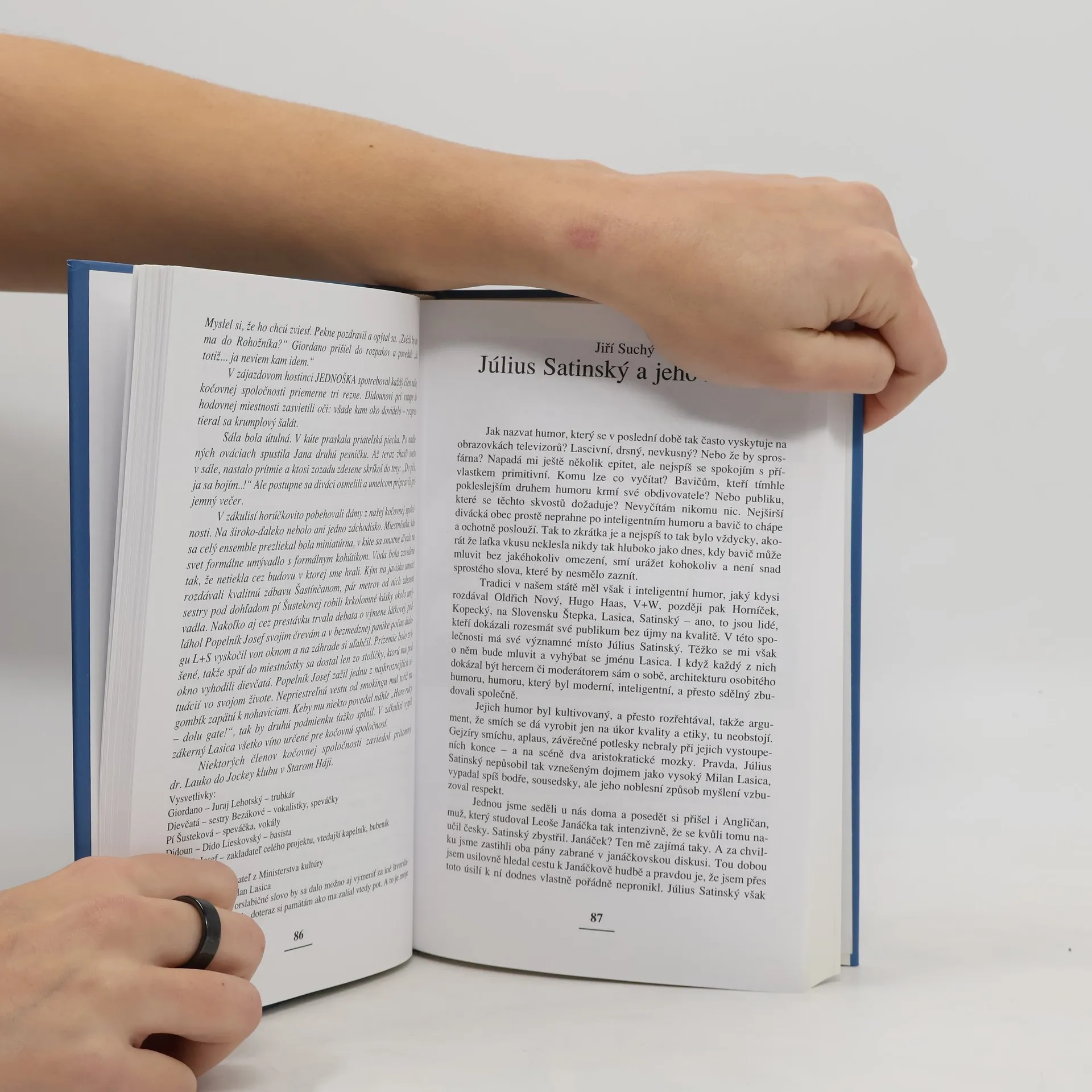 Kniha bledomodrý svet Júliusa Satinského obsahuje spomienky, fotografie, karikatúry, sny, dopisy ...