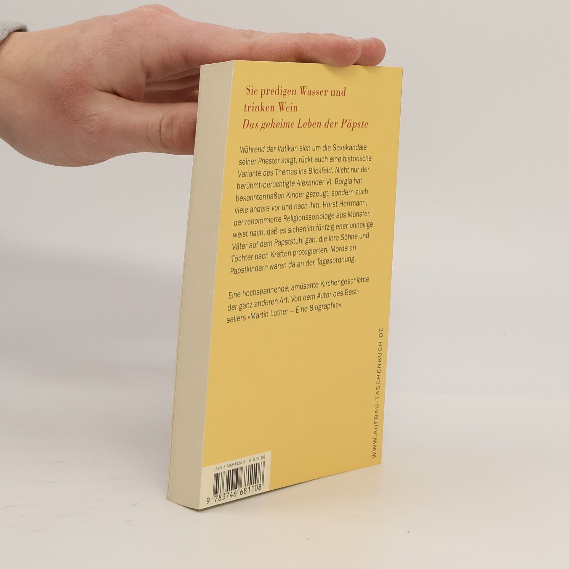 Sie predigen Wasser und trinken Wein§Das brisante Thema: Sex und Kirche§Während der Vatikan sich gegenwärtig um die Sexskandale seiner Priester sorgt, ist auch eine historische Betrachtung des Themas aufschlußreich. Nicht nur der berühmt-berüchtigte Alexander VI. Borgia hat Kinder gezeugt, auch viele Päpste vor und nach ihm. Der renommierte Religionssoziologe Horst Herrmann weist nach, daß es um die fünfzig eher unheilige Väter auf dem Papststuhl gab, die ihre Söhne und Töchter nach Kräften protegierten. Morde an Papstkindern waren an der Tagesordnung. Eine hochspannende, etwas andere Kirchengeschichte.§