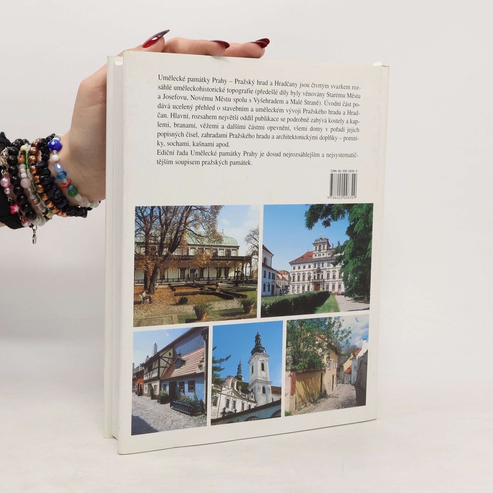 Čtvrtý svazek rozsáhlé uměleckohistorické topografie. Úvodní část podává ucelený přehled o stavebním a uměleckém vývoji Pražského hradu a Hradčan. Hlavní, rozsahem největší oddíl publikace se podrobně zabývá kostely a kaplemi, branami, věžemi a dalšími částmi opevnění, všemi domy v pořadí jejich popisných čísel, zahradami Pražského hradu a architektonickými doplňky - pomníky, sochami, kašnami apod.