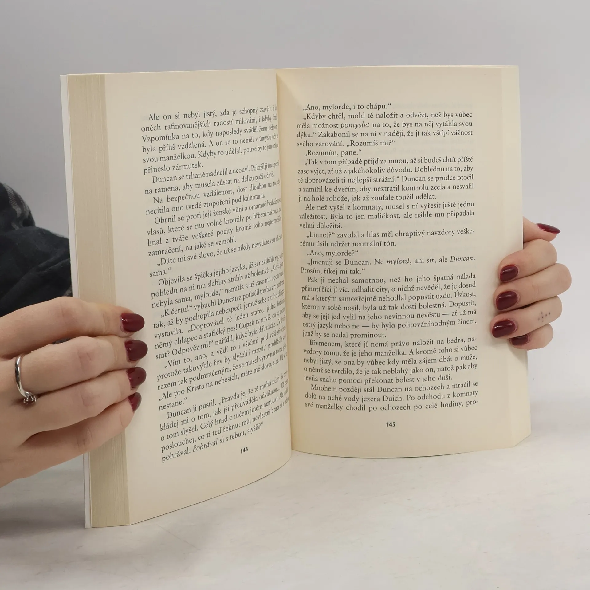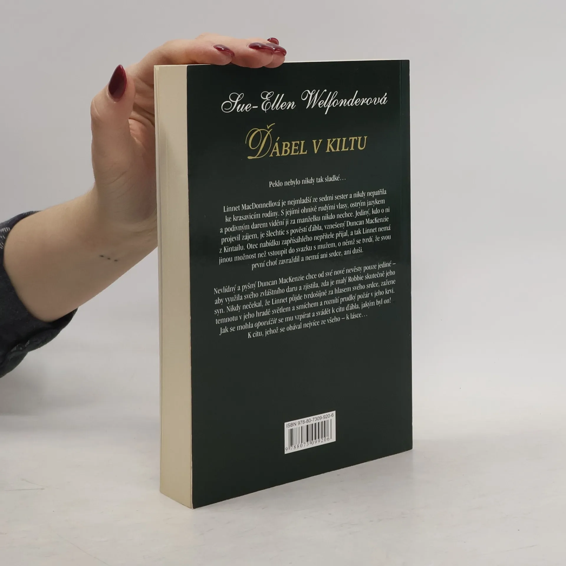 Peklo nebylo nikdy tak sladké... Linnet MacDonnellová je nejmladší ze sedmi sester a nikdy nepatřila ke krasavicím rodiny. S jejími ohnivě rudými vlasy, ostrým jazykem a podivným darem vidění ji za manželku nikdo nechce. Jediný, kdo o ní projevil zájem je šlechtic s pověstí ďábla, vznešený Duncan MacKenzie z Kintailu. Otec nabídku zapřísáhlého nepřítele přijal, a tak Linnet nemá jinou možnost než vstoupit do svazku s mužem, o němž se tvrdí, že svou první choť zavraždil a nemá ani srdce ani duši. Nevlídný a pyšný Duncan MacKenzie chce od své nové nevěsty pouze jediné - aby využila svého zvláštního daru a zjistila, zda je malý Robbie skutečně jeho syn. Nikdy nečekal, že Linnet půjde za hlasem svého srdce, zažene temnotu v jeho hradě světlem a smíchem a roznítí prudký požár v jeho krvi. Jak se mohla opovážit se mu vzpírat a svádět k citu ďábla, jakým byl on! K citu, jehož se obával nejvíce ze všechno - k lásce...