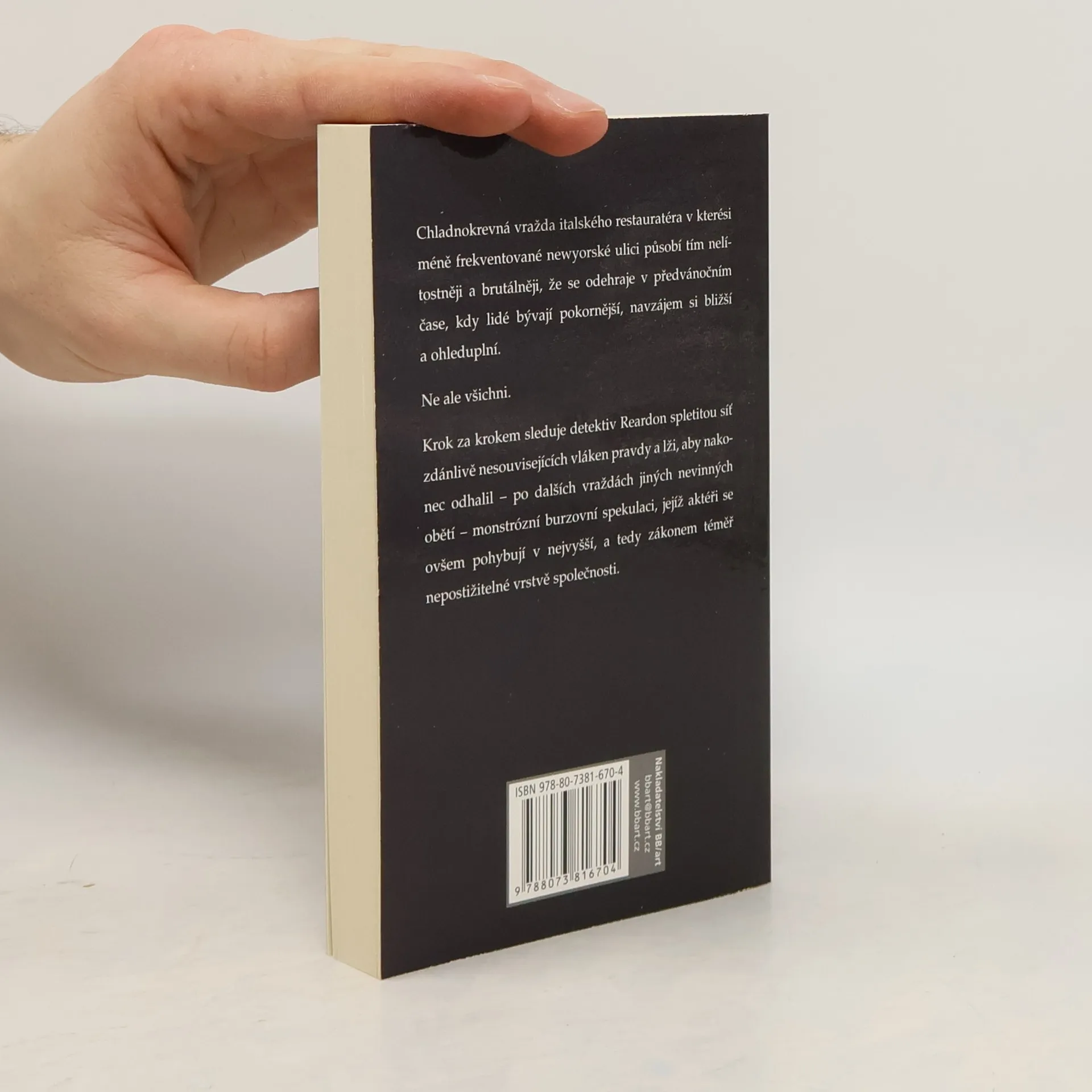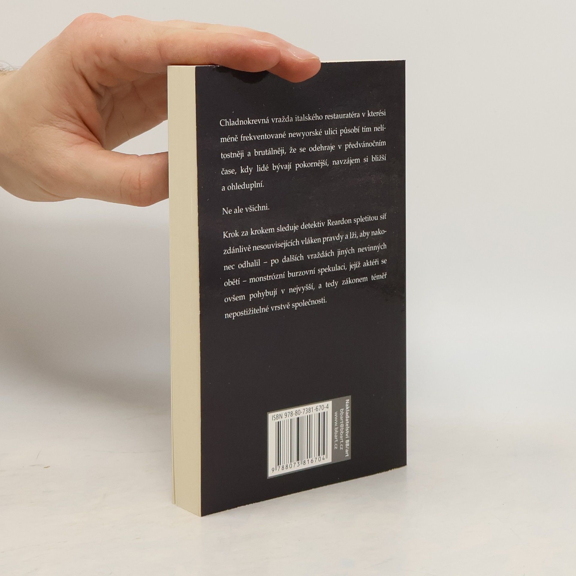 Chladnokrevná vražda italského restauratéra v kterési méně frekventované newyorské ulici působí tím nelítostněji a brutálněji, že se odehraje v předvánočním čase, kdy lidé bývají pokornější, navzájem si bližší a ohleduplní. Ne ale všichni. Krok za krokem sleduje detektiv Reardon spletitou síť zdánlivě nesouvisejících vláken pravdy a lži, aby nakonec odhalil - po dalších vraždách jiných nevinných obětí - monstrózní burzovní spekulaci, jejíž aktéři se ovšem pohybují v nejvyšší a tedy zákonem téměř nepostižitelné vrstvě společnosti.