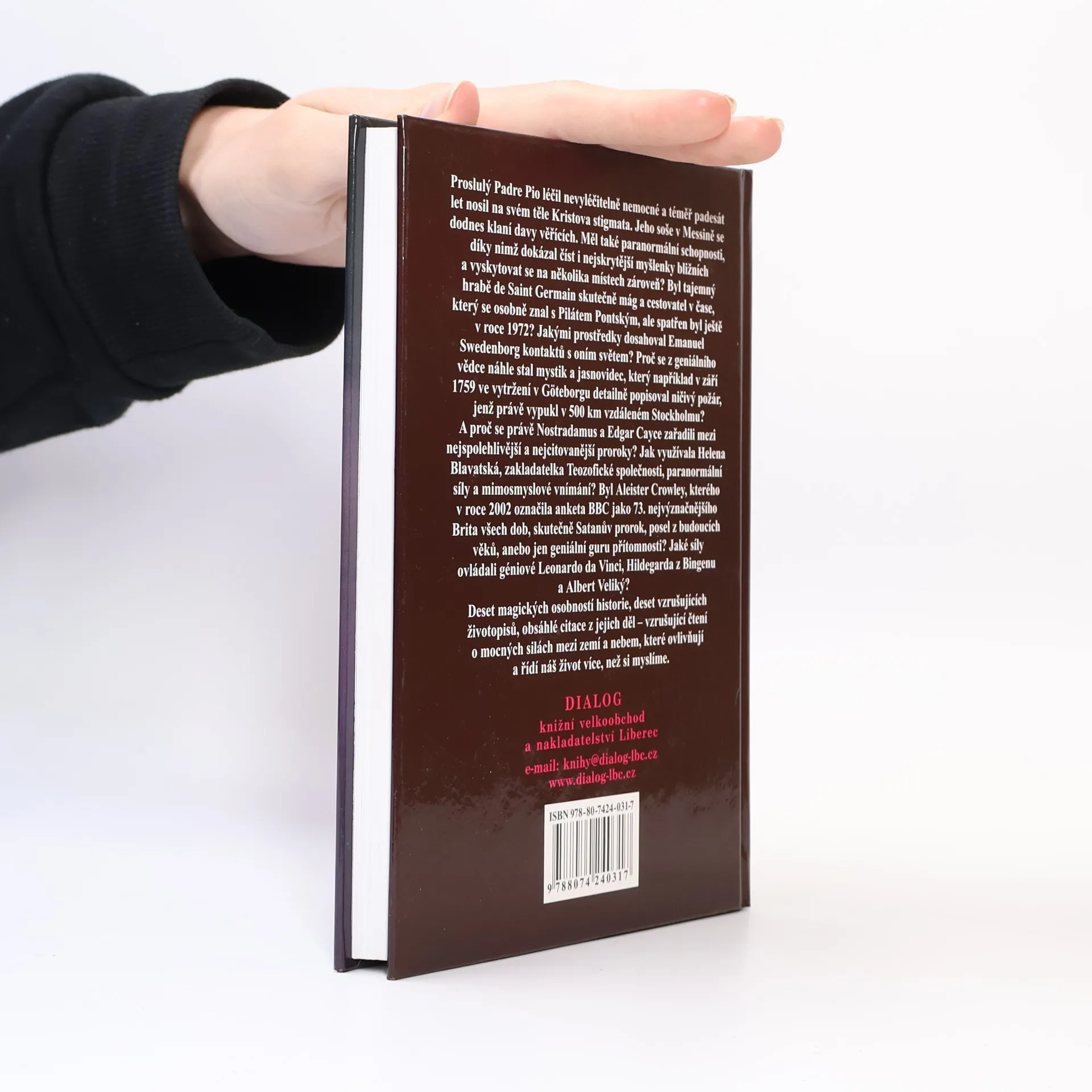 Deset magických osobností historie, deset vzrušujících životopisů, obsáhlé citace z jejich děl, vzrušující čtení o mocných silách mezi zemí a nebem, jež ovlivňují a řídí náš život více než si myslíme. Proslulý padre Pio přečetl i nejskrytější myšlenky bližních, léčil nevyléčitelně nemocné a málem padesát let nosil na svém těle Kristova stigmata. Jeho soše v Messině se dodnes klaní davy věřících. Byl hrabě Saint Germain mág a cestovatel v čase, jenž se osobně znal s Pilátem Pontským a přesto byl spatřen ještě v roce 1972? Jakými prostředky dosahoval Emanuel Swedenborg kontaktů s oním světem? Co nejvíce přispělo k tomu, že se stal brilantním jasnovidcem a geniálním vědcem? Slavným se stal v září roku 1759, když z Göteborgu popisoval požár, jenž právě vypukl ve 400km vzdáleném Stockholmu. Ve své precisní vizi jmenoval ulici, v níž se rozšířil oheň a uvedl přesně i čas, kdy byl požár uhašen. A proč se právě Nostradamus a Edgar Cayce zařadili mezi nejspolehlivější a nejcitovanější proroky? Jakým způsobem využívala Helena Blavatská, zakladatelka Theosofické společnosti, paranormální síly a mimosmyslové vnímání? Byl Aleister Crowley skutečně poslem z budoucích věků, anebo geniální guru přítomnosti? Tak či onak jej v roce 2002 označila anketa BBC jako 73. nejvýznačnějšího Brita všech dob. Jaké síly ovládali géniové Leonardo da Vinci, Hildegard von Bingen a Albert Veliký?