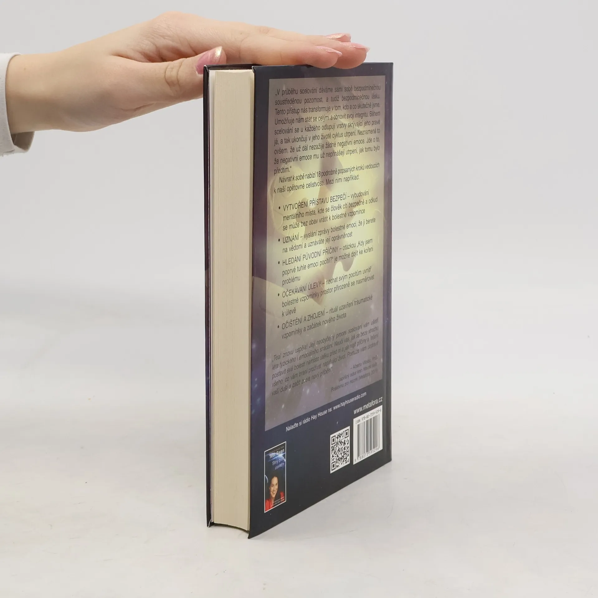 Teal Swan prožila léta zneužívání rodinným známým, členem tajné místní náboženské sekty, než se jí podařilo v devatenácti letech uprchnout a zahájit proces vlastního uzdravování a transformace. Návrat k sobě zve čtenáře na tuto povzbuzující cestu za uzdravením a osvobozením. Každý, kdo byl kdy zasažen traumatem, zde nalezne způsob, jak znovu poskládat sebe sama bez zatížení minulostí. Na základě svých vrozených mimosmyslových zkušeností a s použitím psychoterapeutických metod sestavila Teal Swan revoluční proces scelování, který člověka vede ke smíření se sebou, s ostatními a s vnějšími okolnostmi. K zásadním krokům na této cestě například patří: * Vytvoření přístavu bezpečí – vybudování mentálního místa, kde se člověk cítí bezpečně a odkud se může bez obav vrátit k bolestné vzpomínce * Uznání – vyslání zprávy bolestné emoci, že ji berete na vědomí a uznáváte její oprávněnost * Hledání původní příčiny – otázkou „Kdy jsem poprvé tuhle emoci pocítil?“ je možné dojít ke kořeni problému * Očekávání úlevy – nechat svým pocitům uvnitř bolestné vzpomínky prostor přirozeně se nasměrovat k úlevě * Očištění a zhojení – rituál uzavření traumatické vzpomínky a začátek nového života Návrat k sobě zanechá ve čtenáři silnější vědomí vlastní hodnoty ve světě a jistotu, že život může být zase dobrý.