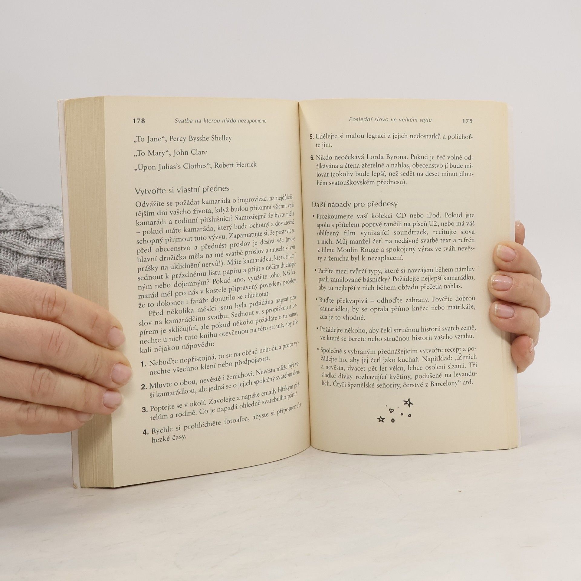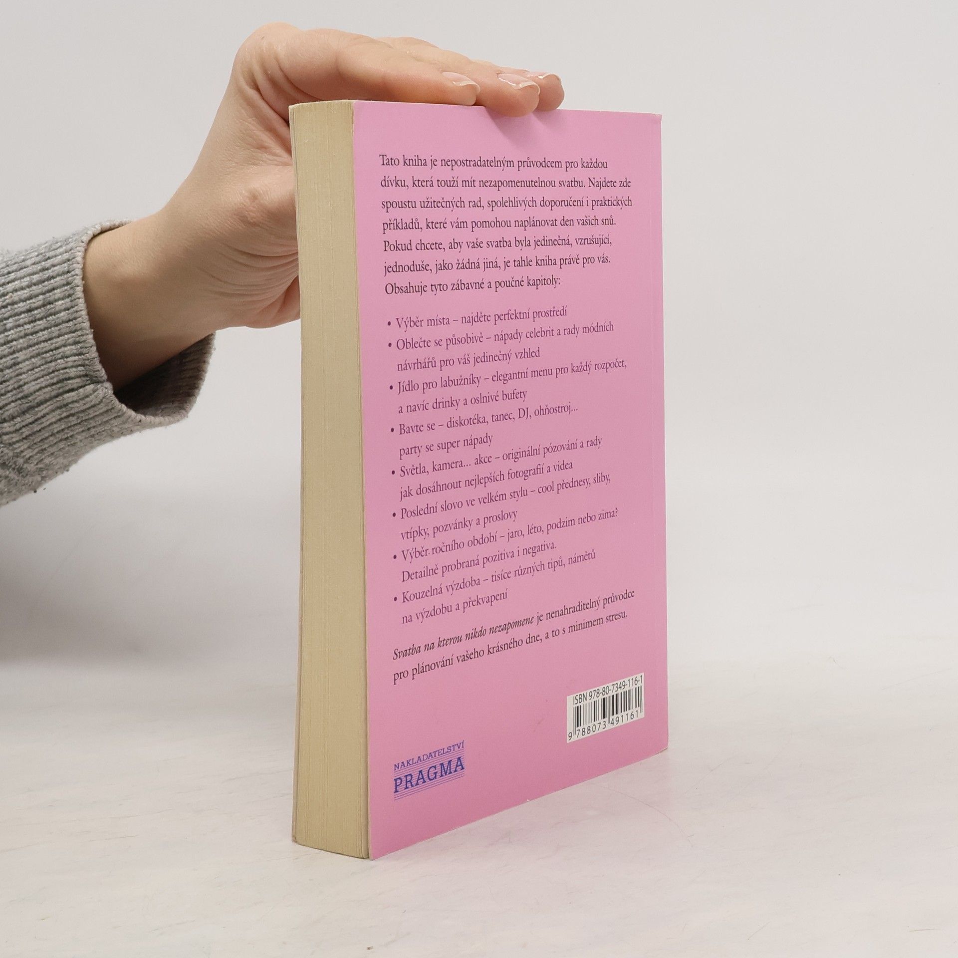 Chcete, aby se vaše svatba stala jedinečnou, nezapomenutelnou a odlišnou od všech ostatních? V tom případě je tato kniha ideální publikací právě pro vás. Je plná výborných nápadů, osvědčených rad a skutečných příběhů, které jsou založeny na vlastní zkušenosti autorky nebo zkušenostech dalších vdaných žen. I přesto že nemáte několikamilionový rozpočet, můžete si dovolit uspořádat svatbu ve stylu světoznámých celebrit. Kniha vám pomůže s výběrem ideálního místa pro vaši svatbu, oslavu i líbánky, ideálního ročního období, působivého oblečení po vzoru nejznámějších světových návrhářů, jídla, zábavného programu na oslavu, poradí jak dosáhnout těch nejkrásnějších fotografií, proslovů a pomůže s rozhodováním se, jaká výzdoba bude pro váš svatební den tou nejlepší.