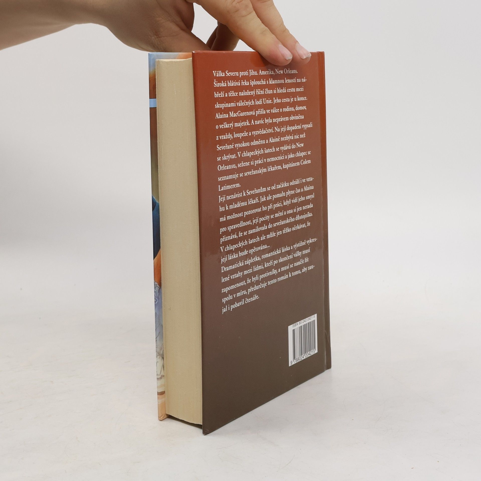 1863 New Orleans Válka Severu proti Jihu. Amerika, New Orleans. Široká blátivá řeka šplouchala s klamnou leností na nábřeží a těžce naložený říční člun si hledal cestu mezi skupinami válečných lodí Unie. Jeho cesta byla u konce. Alaina MacGarenová přišla ve válce o rodinu, domov, o veškerý majetek. A navíc byla neprávem obviněna z vraždy, loupeže a vyzvědačství. Na její dopadení vypsali Seveřané vysokou odměnu a Alaině nezbývá nic jiného, než se skrývat. V chlapeckých šatech se vydává do New Orleansu, sežene si práci v nemocnici a jako chlapec se seznamuje se seveřanským lékařem, kapitánem Colem Latimerem. Její nenávist k Seveřanům se od počátku odráží i ve vztahu k mladému lékaři. Jak ale pomalu plyne čas a Alaina má možnost pozorovat ho při práci, když vidí jeho smysl pro spravedlnost, její pocity se mění a ona si jen nerada přiznává, že se zamilovala do seveřanského důstojníka. V chlapeckých šatech ale může jen těžko očekávat, že její láska bude opětována… Dramatická zápletka, romantická láska a výstižně vykreslené vztahy mezi lidmi, kteří po skončení války musí zapomenout, že byli protivníky, a naučit se žít spolu v míru, předurčuje tento román k tomu, aby zaujal i pobavil čtenáře.