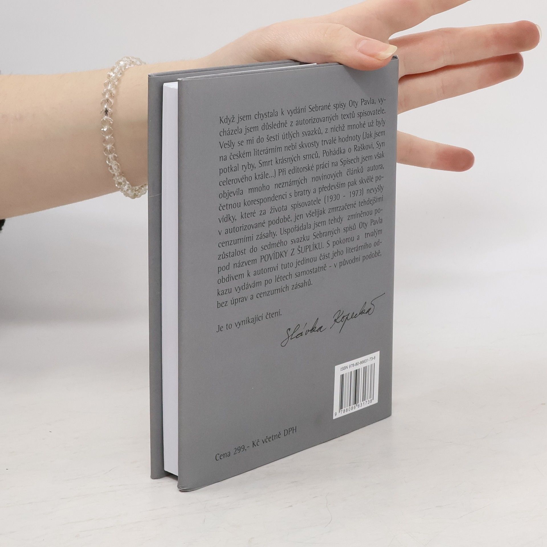 V závěrečném svazku Sebraných spisů Oty Pavla najdeme texty, které za života autora vyšly většinou jen časopisecky, knižně jako příležitostné články, úvody či sborníky. V sedmdesátých letech kolovaly některé povídky v opisech, protože naděje na knižní vydání neměly. Dále jsou do publikace zařazeny texty z pozůstalosti, které v sedmdesátých letech kolovaly pouze v opisech a později byly zařazovány do různých povídkových výborů. Knížku, rozdělenou tematicky do pěti částí, uvozuje fragment emotivní rodinné korespondence. Svazek tak z jiného pohledu doplňuje dosud vydané dílo.
