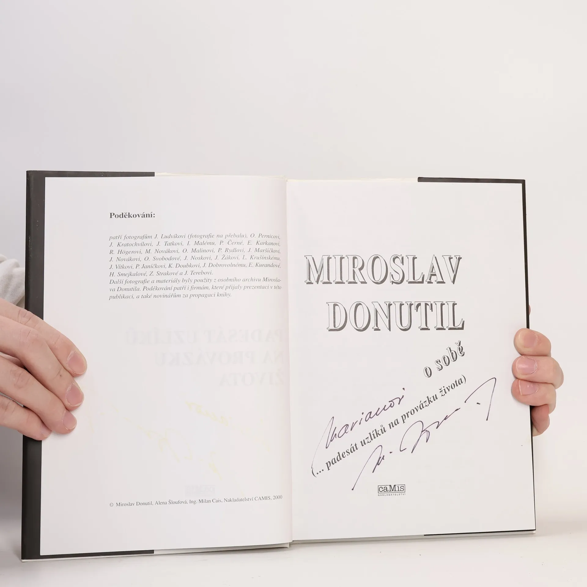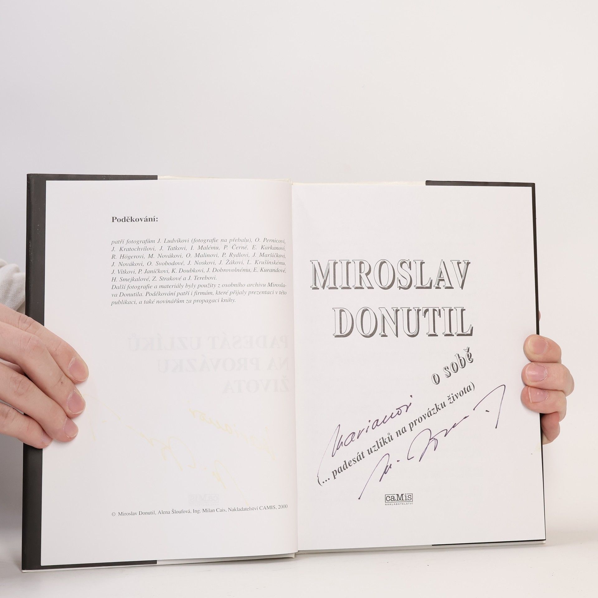 Miroslav Donutil, Alena Šloufová, Milan Cais: Miroslav Donutil o sobě (... padesát uzlíků na provázku života). Padesát uzlíků M. Donutila, to je padesát vzpomínek na různé situace a zážitky, které ho v životě potkaly. Kniha obsahuje 151 černobílých a 76 barevných fotografií, korespondenci a kompletní výčet divadelních, filmových a televizních rolí Miroslava Donutila.