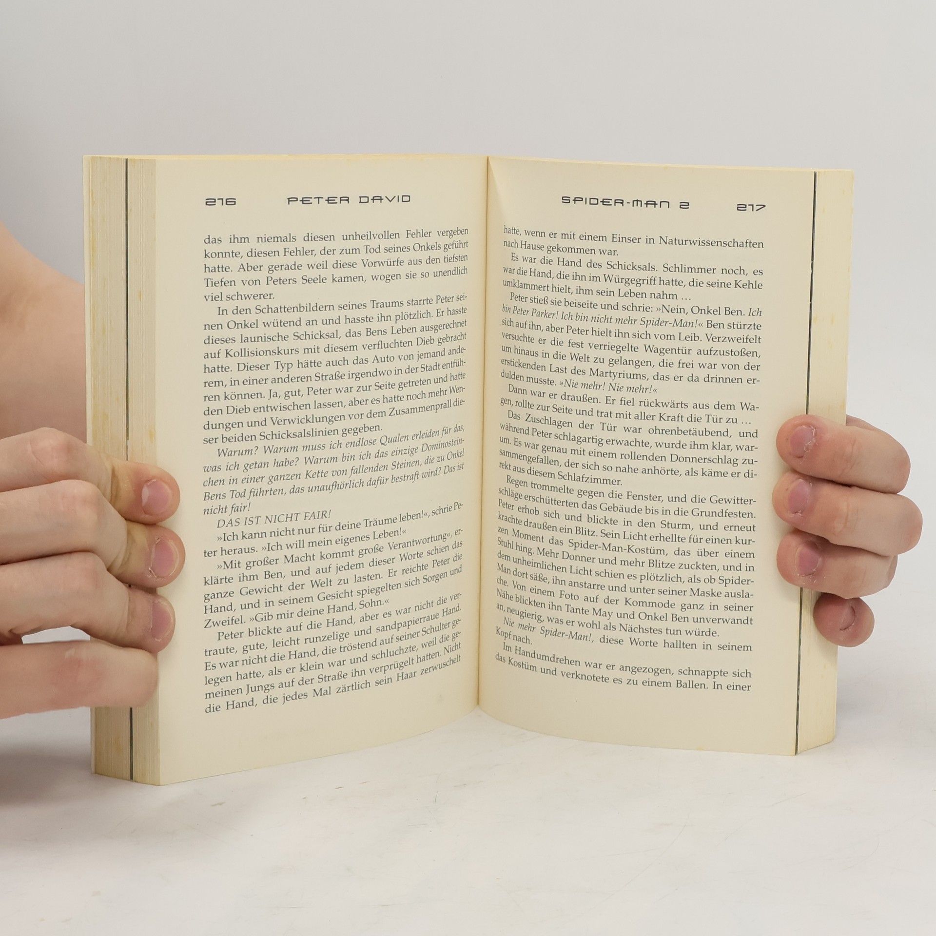 Die Fortsetzung eines der gefeiertsten und erfolgreichsten Filme der letzten Jahre verspricht erneut ein Großereignis zu werden. Wieder hat Regisseur Sam Raimi für seine Comicverfilmung Tobey Maguire und Kirsten Dunst gewinnen können. Der Roman zum Film entstammt auch diesmal der Feder von Bestsellerautor Peter David. Der Kampf zwischen Gut und Böse kann von neuem beginnen.