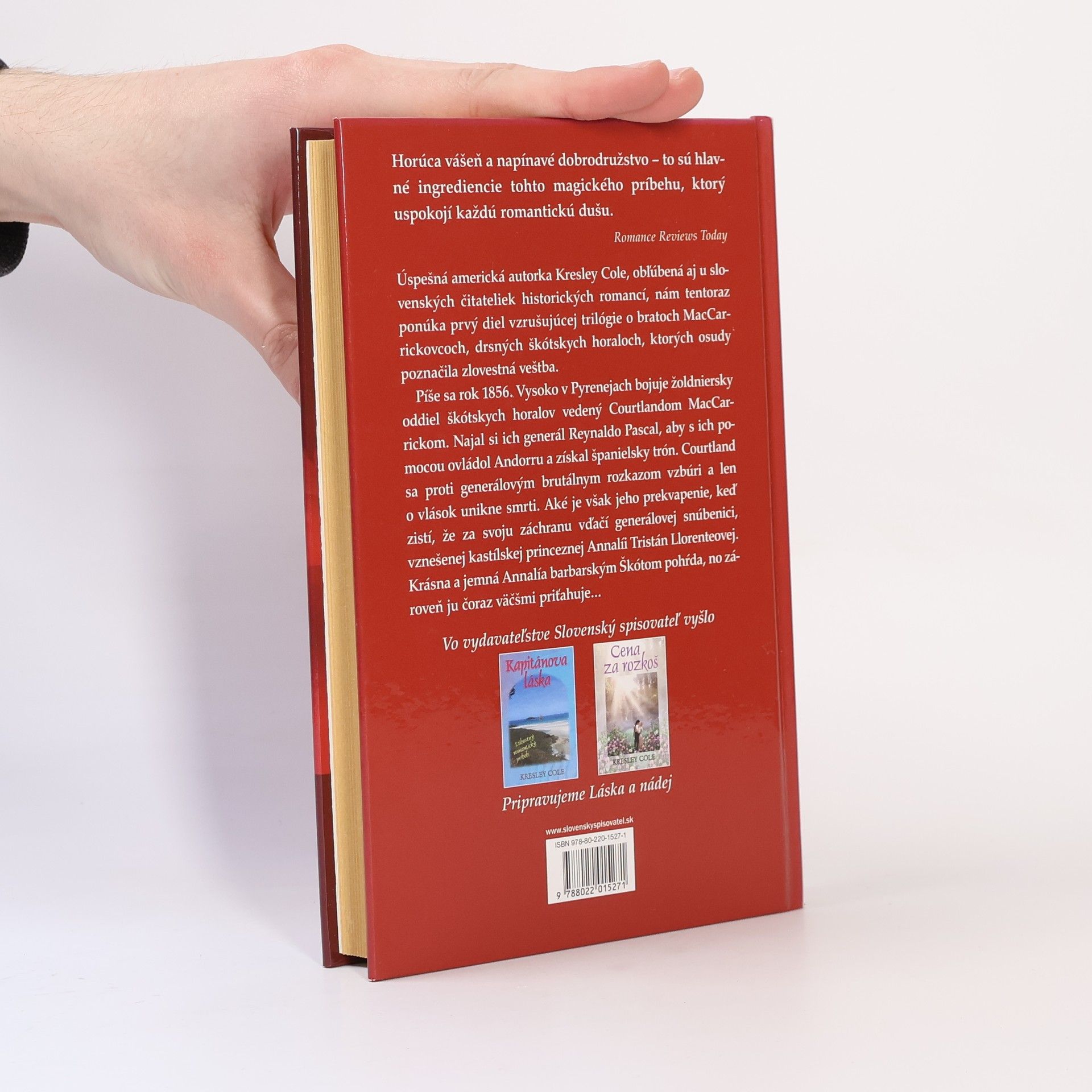 Prvý diel trilógie populárnej americkej autorky prináša vzrušujúci príbeh škótskeho horala Courtlanda, najmladšieho z bratov MacCarrickovcov, a krásnej kastílskej princeznej Annalíe. Láska, nespútaná vášeň, dobrodružstvo, zrada a intrigy - to všetko nájdete v tejto pútavej romanci. Píše sa rok 1856. Vysoko v Pyrenejách bojuje žoldniersky oddiel škótskych horalov vedený Courtlandom MacCarrickom. Najal si ich generál Reynaldo Pascal, aby s ich pomocou ovládol Andorru a získal španielsky trón. Courtland sa proti generálovým brutálnym rozkazom vzbúri a len o vlások unikne smrti. Aké je však jeho prekvapenie, keď zistí, že za svoju záchranu vďačí generálovej snúbenici, vznešenej kastílskej princeznej Annalíi Tristán Llorenteovej. Krásna a jemná Annalía barbarským Škótom pohŕda, no zároveň ju čoraz väčšmi priťahuje...