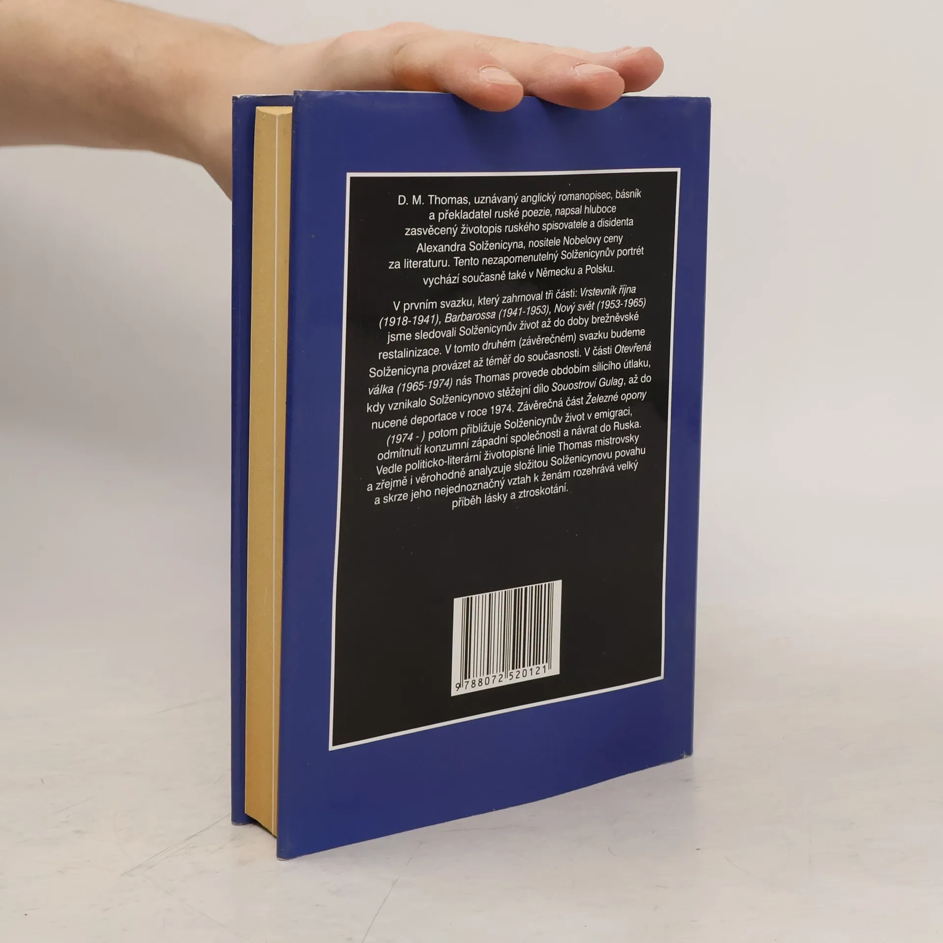 V tomto druhém (závěrečném) svazku budeme Solženicyna provázet až téměř do současnosti. V části Otevřená válka (1965-1974) nás Thomas provede obdobím sílícího útlaku, kdy vznikalo Solženicynovo stěžejní dílo Souostroví Gulag, až do nucené deportace v roce 1974. Závěrečná část Železné opony (1974 -) potom přibližuje Solženicynův život v emigraci, odmítnutí konzumní západní společnosti a návrat do Ruska. Vedle politicko-literární životopisné linie Thomas mistrovsky a zřejmě i věrohodně analyzuje složitou Solženicynovu povahu a skrze jeho nejednoznačný vztah k ženám rozehrává velký příběh lásky a ztroskotání.