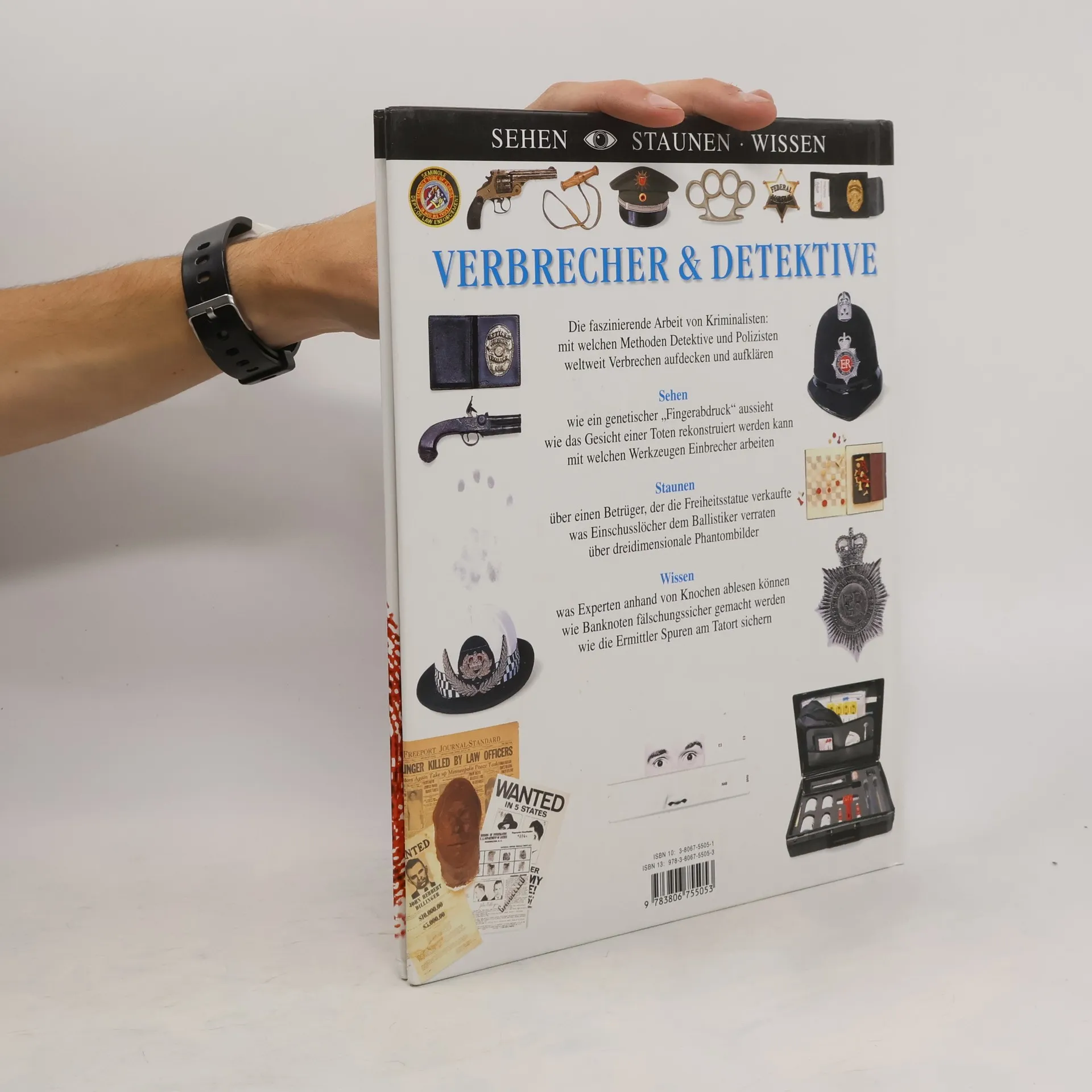 Ein Überblick über Geschichte und Gegenwart der Arbeit von Kriminalisten: Tatortanalyse, Fingerabdrücke, Forensik, Typologie der Kriminalität u.a.; reich illustriert