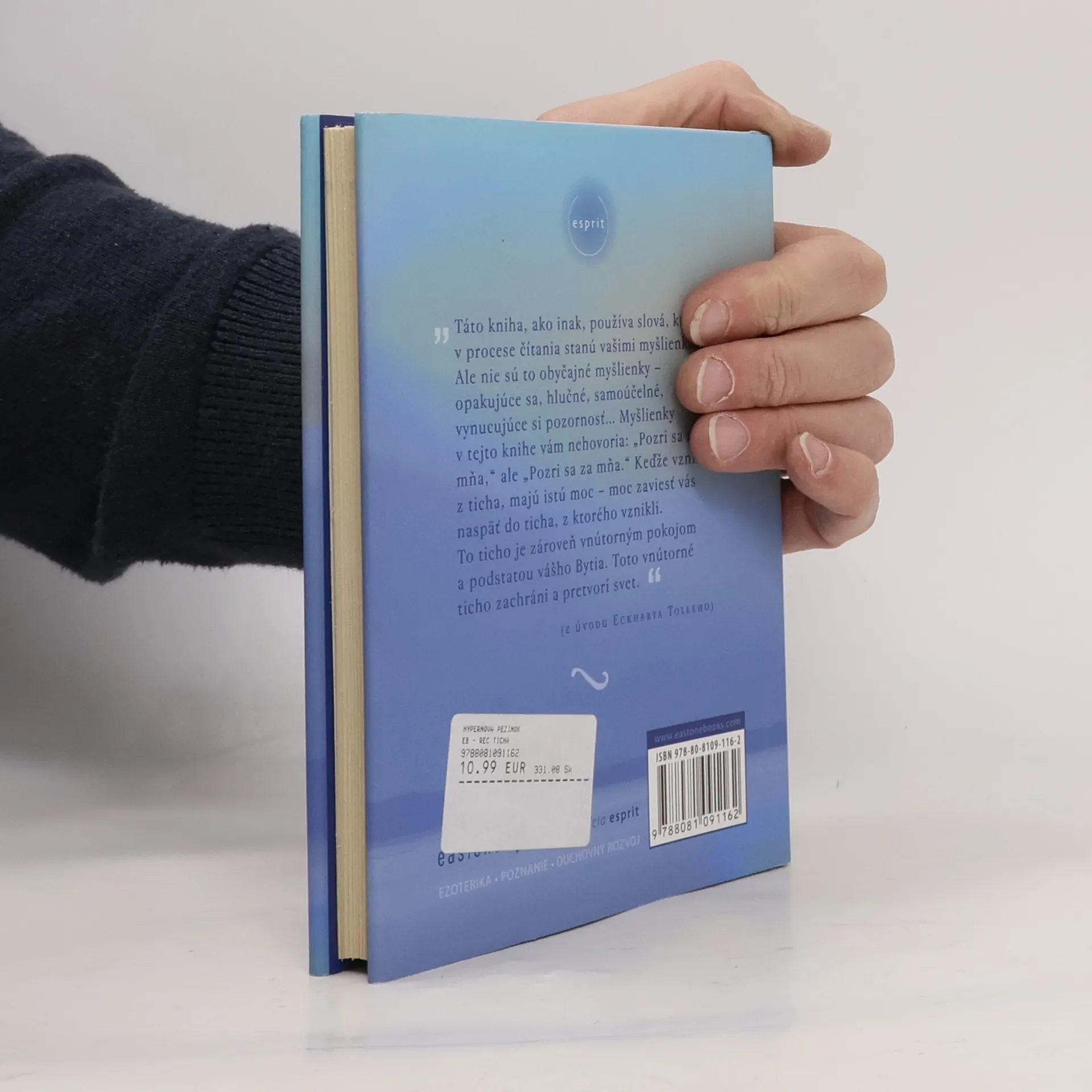 Ponorte sa do ticha. Podstata učenia Eckharta Tolleho je jednoduchá: Ak sa napojíme na vnútorné ticho, dostaneme sa za hranice našej mysle a emócií a objavíme tak hlboký trvalý pokoj, spokojnosť a vyrovnanosť. Jeho mimoriadne úspešná prvá kniha s názvom Sila prítomného okamihu oslovila milióny ľudí na celom svete. V tomto netrpezlivo očakávanom novom diele Tolle ponúka podstatu svojho učenia v krátkych jednoduchých textoch, zrozumiteľných pre každého. Eckhart Tolle dobre rozumie duchovným potrebám dnešnej doby. Vychádza z podstaty všetkých duchovných tradícií a ich pravdy vyjadruje prekvapivým a osviežujúcim spôsobom. Výsledkom je kniha, ktorá je paradoxne starobylá a súčasná zároveň, plná dobre načasovaných a silných posolstiev. Reč ticha sa môže stať prinajmenšom prebudením pre tých čitateľov, ktorí dokážu dať slovám šancu, aby na nich zapôsobili svojim tichým kúzlom.