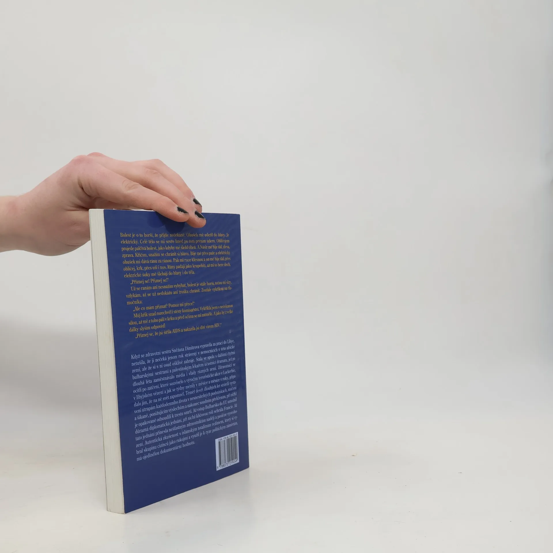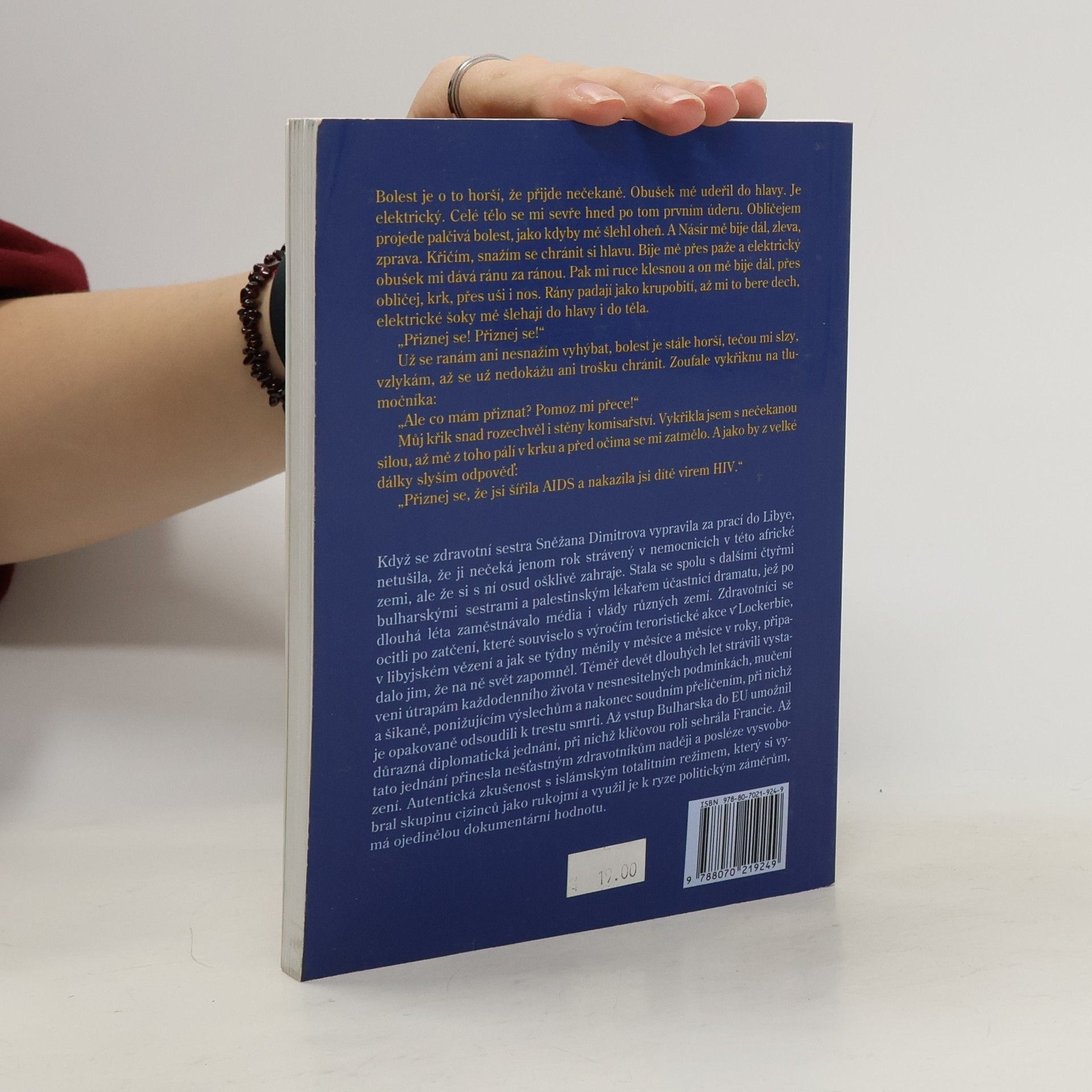 Autentický příběh bulharských zdravotních sester vězněných v Libyi a odsouzených k trestu smrti Příběh bulharských zdravotních sester vězněných v Libyi a odsouzených k trestu smrti. Jejich osud vzbudil velký zájem veřejného mínění na celém světě a přiměl celou řadu významných politiků, aby k němu zaujali otevřený postoj. Příběh začíná návštěvou paní Cecílie Sarkozyové u odsouzených Bulharek. Autorka vypráví o svém životě a práci zdravotní sestry v Bulharsku. V roce 1998 požádala o práci v Libyi v naději na lepší plat, půl roku po příjezdu však byla zatčena a obviněna spolu s dalšími, že více než 400 dětem záměrně podali v nemocnici v Benghází krev infikovanou HIV. Zdravotníci vinu popírají. Libyjské soudy jim stanovily trest smrti. Jejich rozhodnutí změnila až v červenci 2007 Nejvyšší soudní rada Libye, která skupině vyměřila trest doživotního vězení. V poslední části uvádí autorka své poznatky o libyjské policii a libyjském soudnictví, o životě ve vězení, výsleších i mučení. Postupně se k vězněným dostávají zástupci bulharské ambasády, i vyšší političtí představitelé, ale nikdo jim nedokáže pomoci. Až po intervencích EU a návštěvě paní Sarkozyové v červenci 2007 přichází náhlé osvobození a návrat do Bulharska.