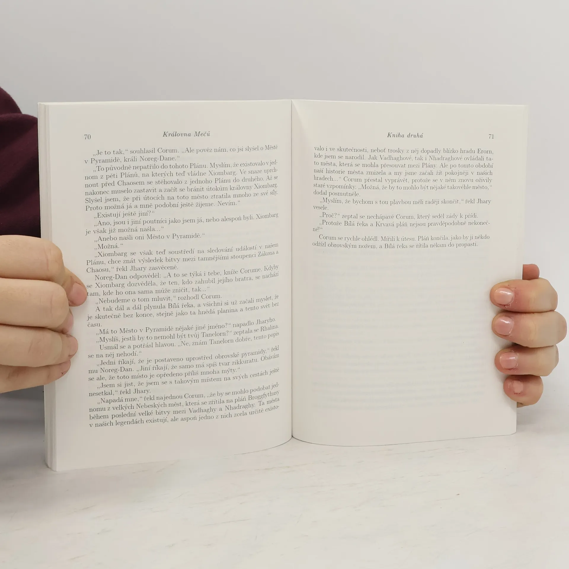 Kníže Corum Jhaelen Irsei, zřejmě poslední z rodu Vadhaghů, známý rovněž jako kníže v Šarlatovém plášti, zažívá na své nelehké cestě v boji proti Chaosu další dobrodružství. V předešlém svazku bojoval Corum proti Ariochovi, zastánci Chaosu, poznal věčný svár mezi Zákonem a Chaosem, dozvěděl se, že Arioch je Kníže mečů, Xiombarg je Královna mečů a nejmocnějším Vládcem mečů, jenž panuje nad posledními pěti Plány, je Král mečů Mabelode. A také že síla smrtelníků je nutná v nápravě Vesmírné rovnováhy, která se někdy vychýlí... Po porážce Ariocha to vypadá, že Corum konečně nalezne klid a mír. Setkává se však s Jhary-a-Conelem, průvodcem hrdinů, jenž ho seznamuje s chystanou válkou, která je, jak jinak, vedena ve jménu Chaosu. Corum se s přáteli rozhodne, že válce zabrání, a opět se tak dostává do víru divokých bojů, dramatických příhod a šílených dobrodružství, v nichž hledá tajemné Město v Pyramidě. A především zkříží plány Xiombarg, Královně mečů...... celý text