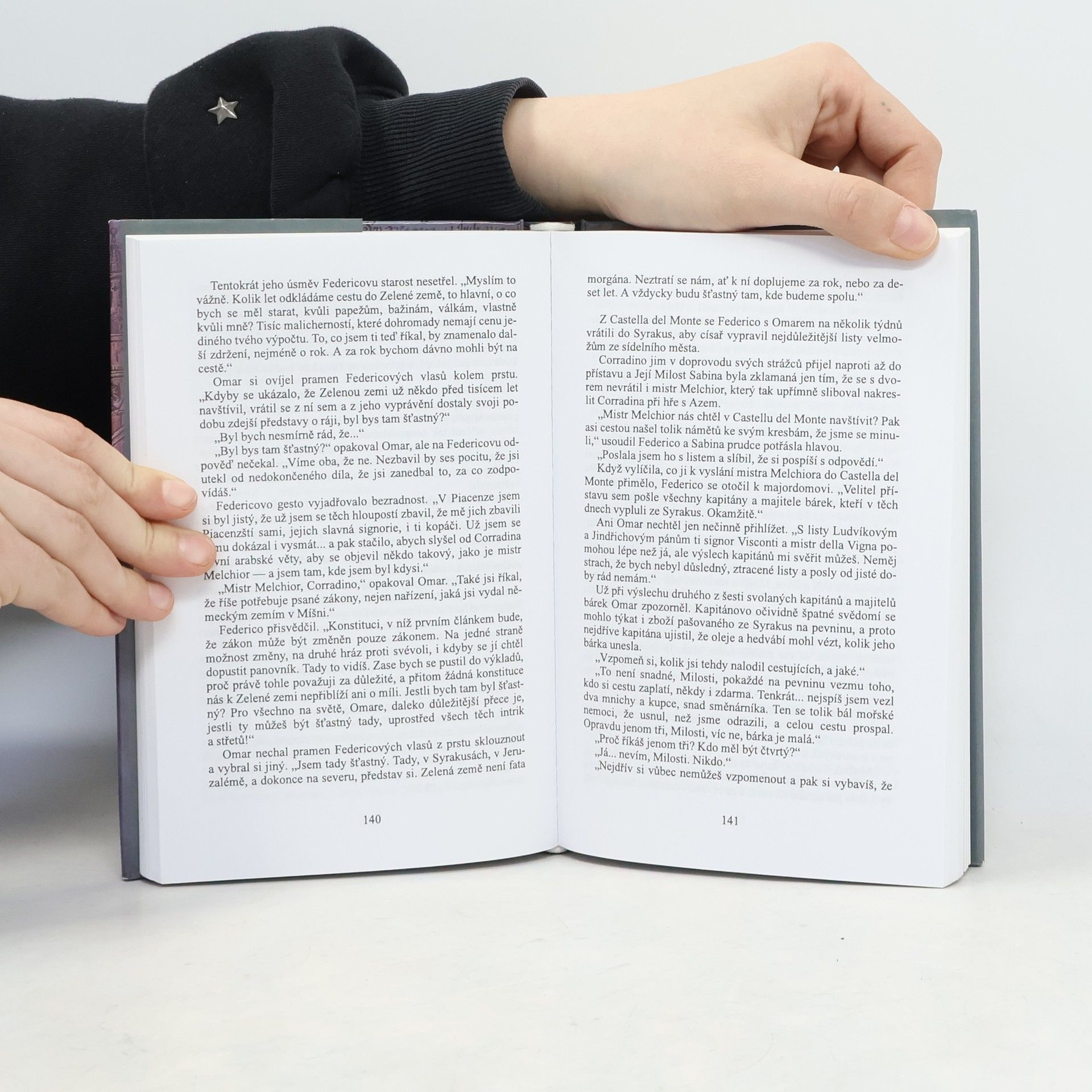 Historický román o životě a vládě římského císaře a sicilského krále Federica II. Štaufského. Federico se snaží vysušit bažiny u Piacenzy, bojuje proti Lombardské lize měst i proti novému papeži Gregoriovi IX. Diplomatické i vojenské půtky, zákulisí císařského dvora, taktické a strategické tahy na tehdejší mapě Evropy končí dočasným Federicovým ústupem, ale posléze jeho vítězstvím nad Lombardskou ligou. Ani neúspěšný pokus o Federicovu vraždu nezbaví císaře státnické činnorodosti, i když mistrovské Omarovy manipulace způsobují, že Federicova skepse k veškerému pozemskému konání sílí....