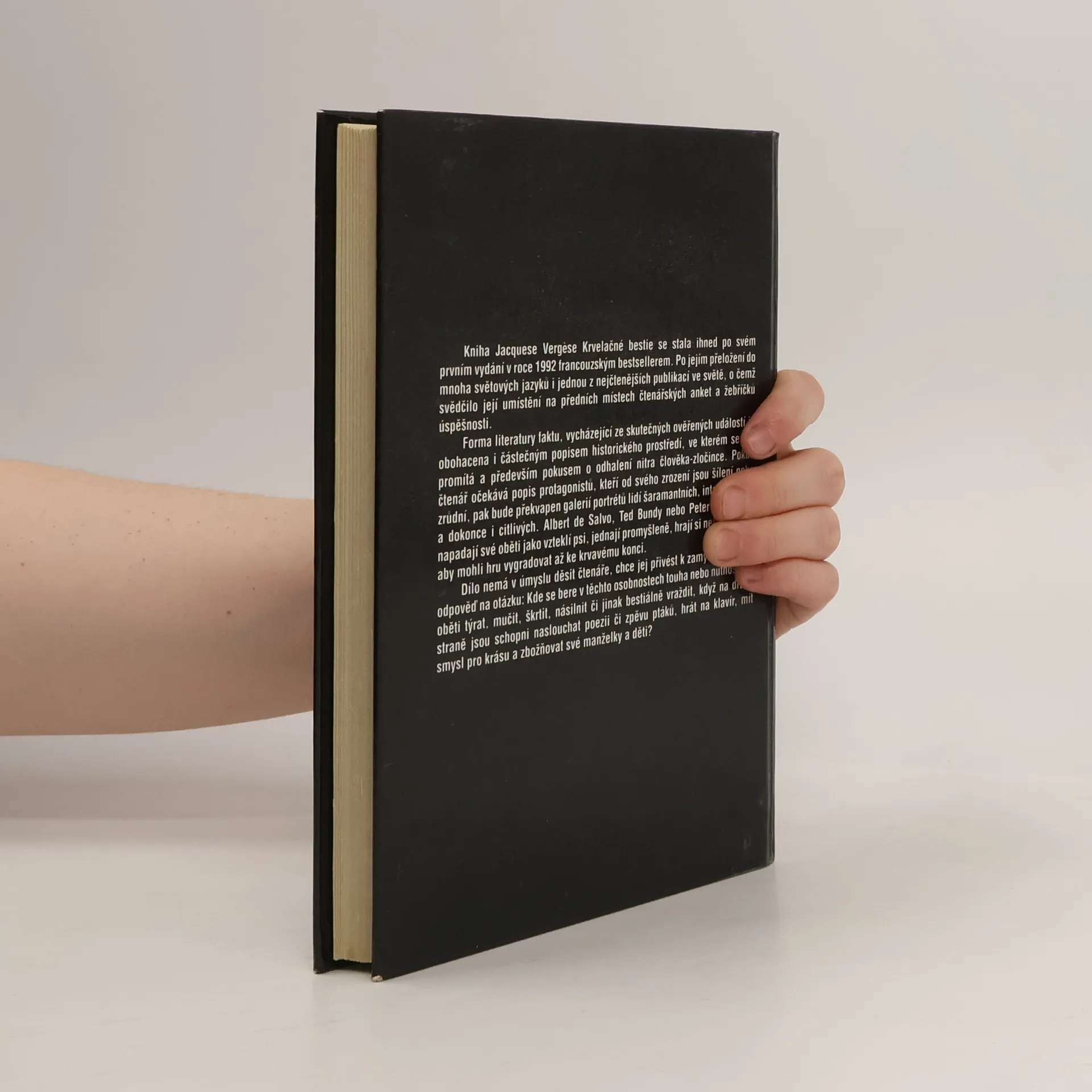 Kniha Jacquese Vergése Krvelačné bestie se stala ihned po svém prvním vydání v roce 1992 francouzským bestsellerem. Po jejím přeložení do mnoha světových jazyků i jednou z nejčastějších publikací ve světě, o čemž svědčilo její umístění na předních místech čtenářských anket a žebříčků úspešnosti. Forma literatury faktu, vycházející ze skutečných ověřených událostí je obohacena i částečným popisem historického prostředí, ve kterém se děj promítá a především pokusem o odhalení nitra člověka-zločince. Pokud čtenář očekává popis protagonistů, kteří od svého zrození jsou šílení nebo zrůdní, pak bude překvapen galerií portrétů lidí šarmantních, inteligentních a dokonce i ctilivých. Albert de Salvo, Ted Bundy nebo Peter Kürten nenapadají své oběti jako vzeklí psi, jednají promyšleně, hrají si nebo svádějí, aby mohli hru vygradovat až ke krvavému konci. Dílo nemá v úmyslu děsit čtenáře, chce jej přivést k zamyšlení. Hledá odpověď na otázku: Kde se bere v těchto osobnostech touha nebo nutnost své oběti týrat, mučit, škrtit, násilnit či jinak bestiálně vraždit, když na druhé straně jsou schopni naslouchat poezii či zpěvu ptáků, hrát na klavír, mít smysl pro krásu a žbožňovat své manželky a děti?