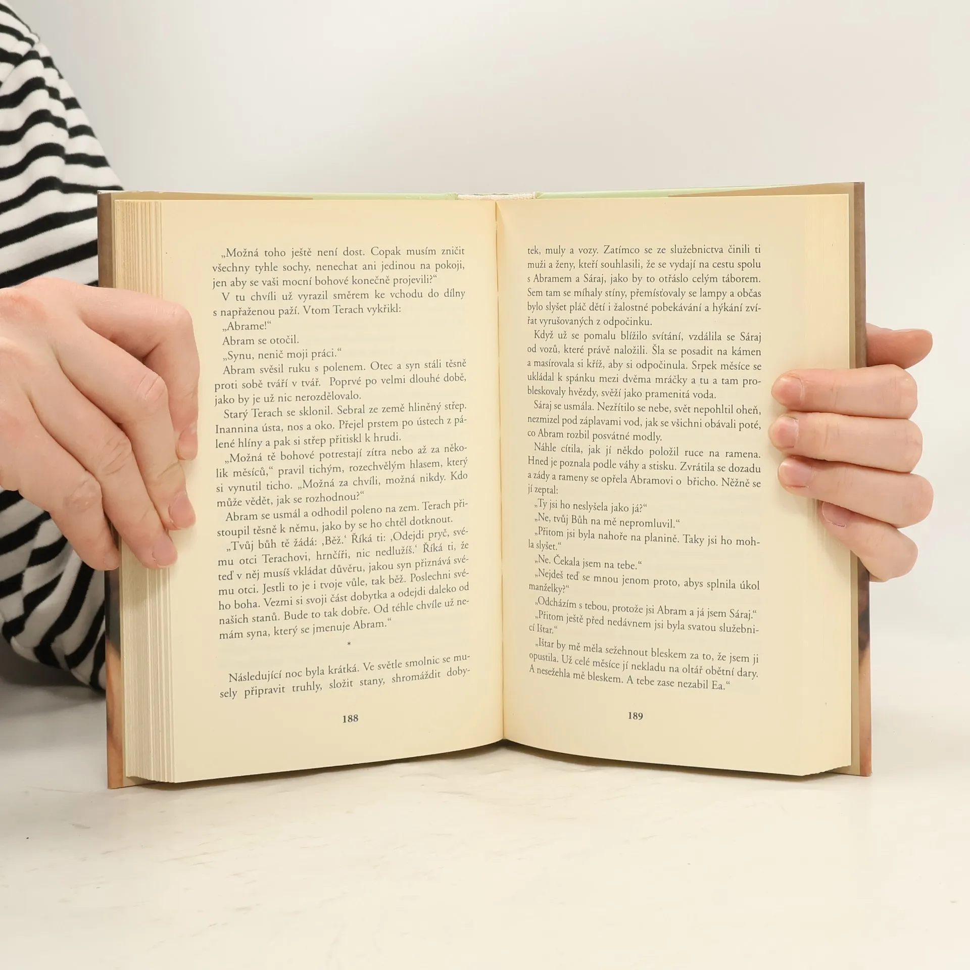 Mladičká Sáraj prožila dětství uprostřed přepychu v bezpečí otcova paláce v sumerském Uru. Ze strachu před svatební nocí s mužem, kterého jí vybral otec, uteče z paláce. Tehdy se setká s Abramem, synem vůdce aramejského kočovného kmene, i když spolu stráví jen krátký čas, pozná, že je to láska jejího života. Ze strachu, že ji otec provdá za někoho jiného, vypije odvar z bylin. Několik dní se ocitá mezi životem a smrtí, nakonec přežije, ale stává se neplodnou. Věštci v tom spatřují znamení bohyně Ištar. Sáraj se stane kněžkou v jejím chrámu, ale i odsud nakonec prchá. Začíná dlouhý příběh ženy, která proslula svou uchvacující krásou. Sára je jednou z nejmodernějších biblických hrdinek.