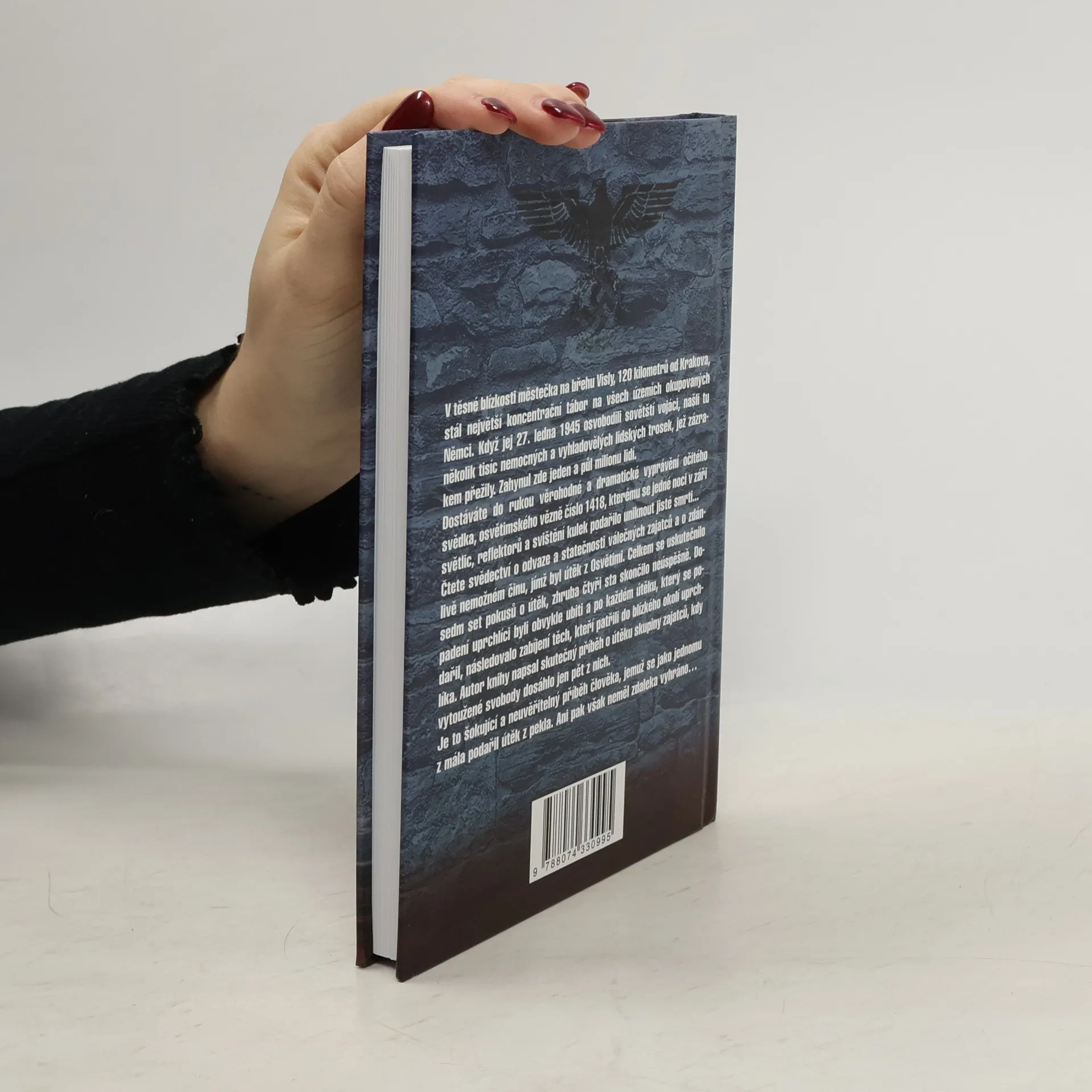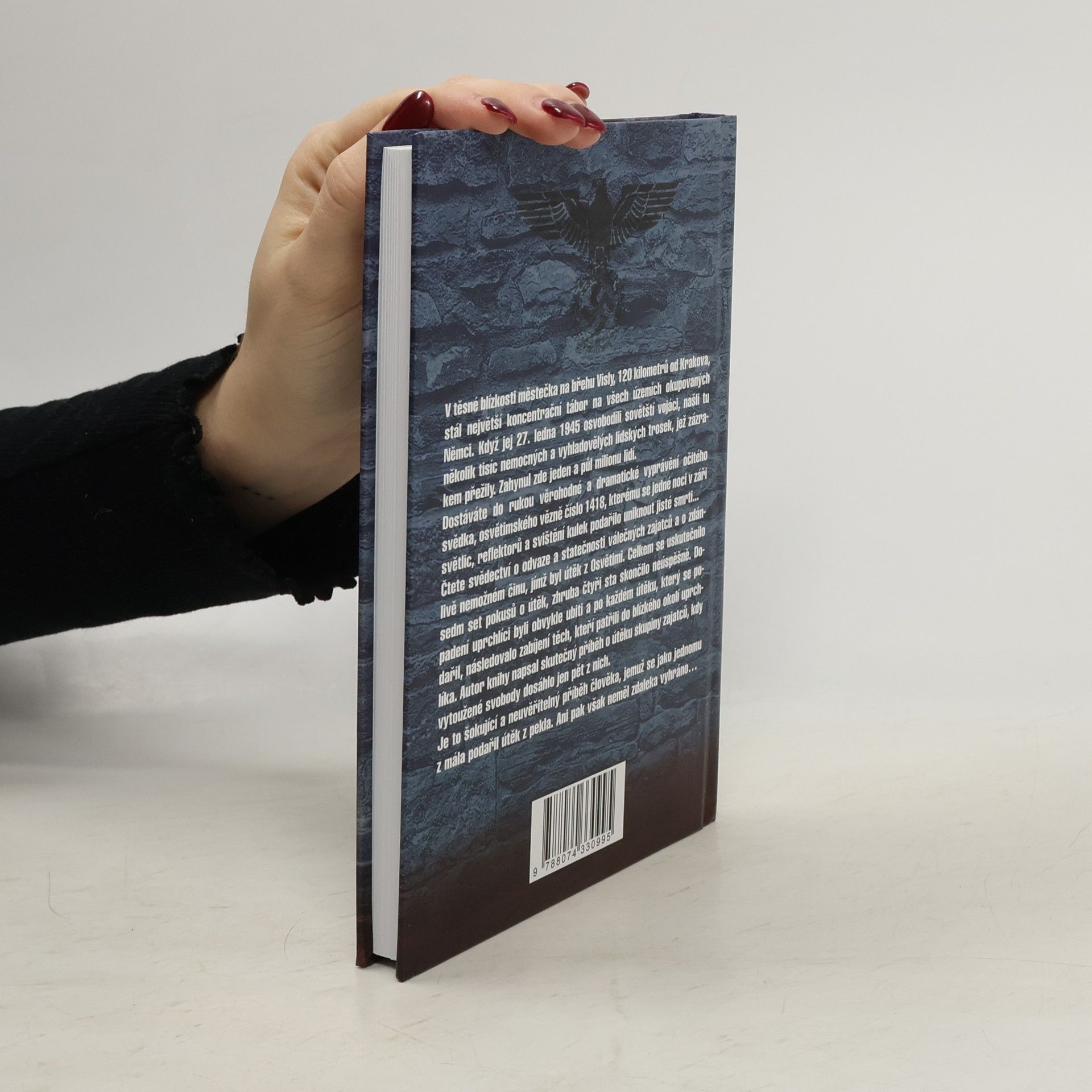 V těsné blízkosti městečka na břehu Visly, 120 kilometrů od Krakova, stál největší koncentrační tábor na všech územích okupovaných Němci. Když jej 27. ledna 1945 osvobodili sovětští vojáci, našli tu několik tisíc nemocných a vyhladovělých lidských trosek, jež zázrakem přežily. Zahynul zde jeden a půl milionu lidí. Dostáváte do rukou věrohodné a dramatické vyprávění očitého svědka, osvětimského vězně číslo 1418, kterému se jedné noci v záři světlic, reflektorů a svištění kulek podařilo uniknout jisté smrti… Čtete svědectví o odvaze a statečnosti válečných zajatců a o zdánlivě nemožném činu, jímž byl útěk z Osvětimi. Celkem se uskutečnilo sedm set pokusů o útěk, zhruba čtyři sta skončilo neúspěšně. Dopadení uprchlíci byli obvykle ubiti a po každém útěku, který se podařil, následovalo zabíjení těch, kteří patřili do blízkého okolí uprchlíka. Autor knihy napsal skutečný příběh o útěku skupiny zajatců, kdy vytoužené svobody dosáhlo jen pět z nich. Je to šokující a neuvěřitelný příběh člověka, jemuž se jako jednomu z mála podařil útěk z pekla. Ani pak však neměl zdaleka vyhráno…