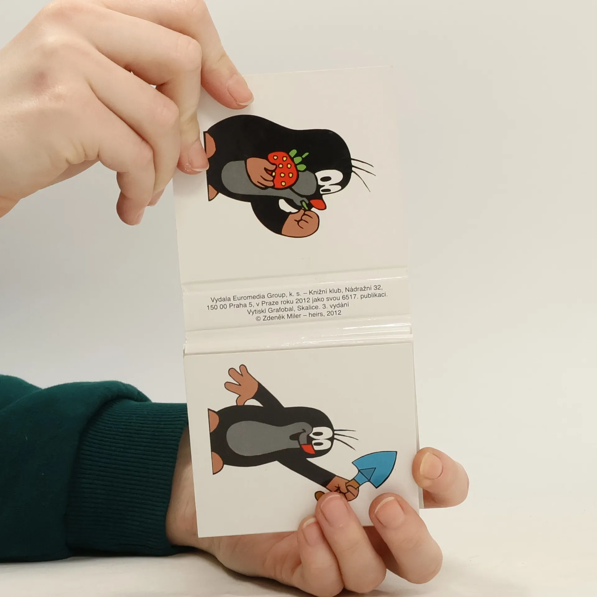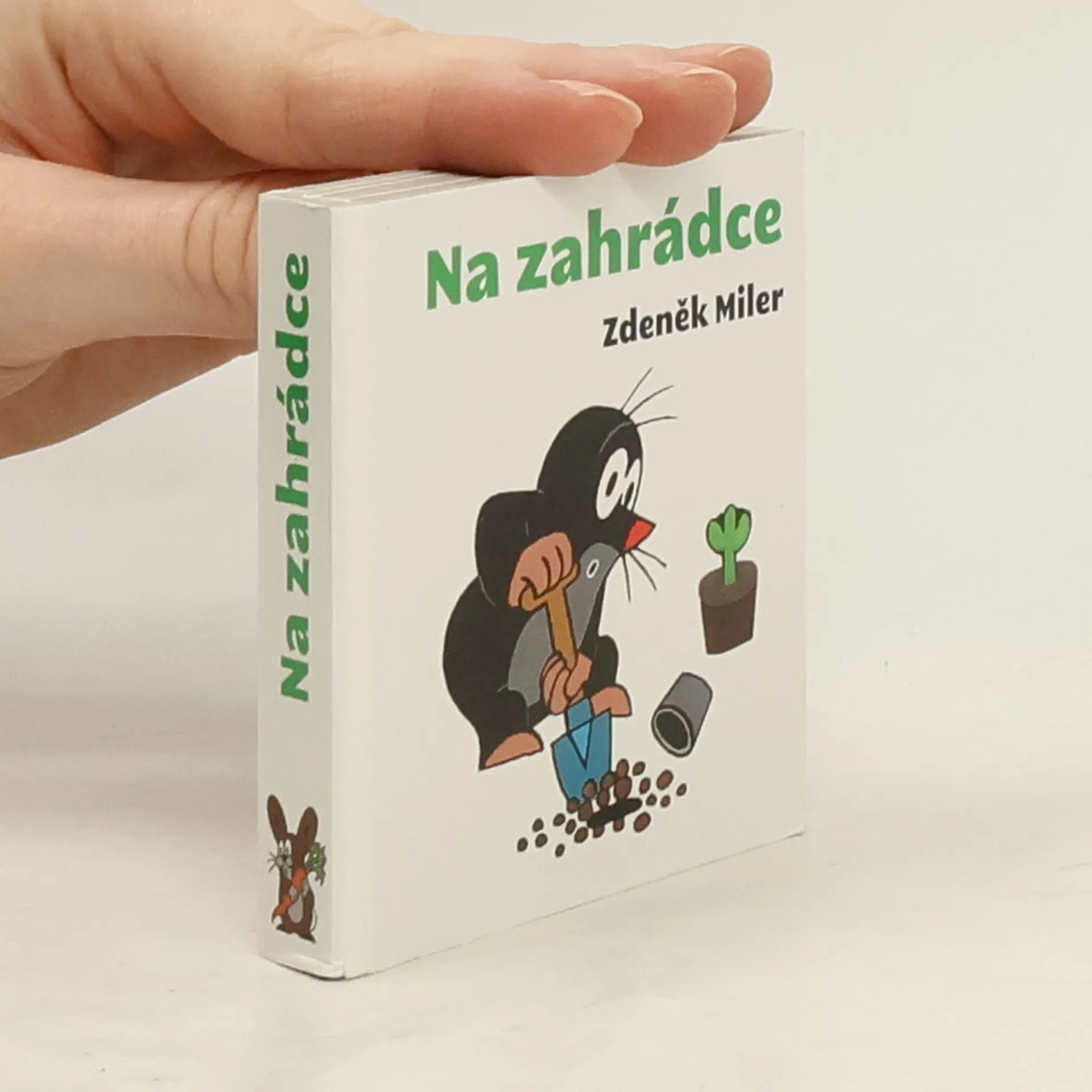 Je jaro a oblíbené postavičky Krtek, myška, ježek a zajíček se vydají pracovat na zahrádku. Nejdříve ji upraví, zasadí kytičky a potom už jen konzumují sklizené plody. Malé leporelo se 14 ilustracemi umožňuje malým dětem ve spolupráci s rodiči rozvíjet slovní zásobu o základních činnostech a poznávat některé ovoce a zeleninu.