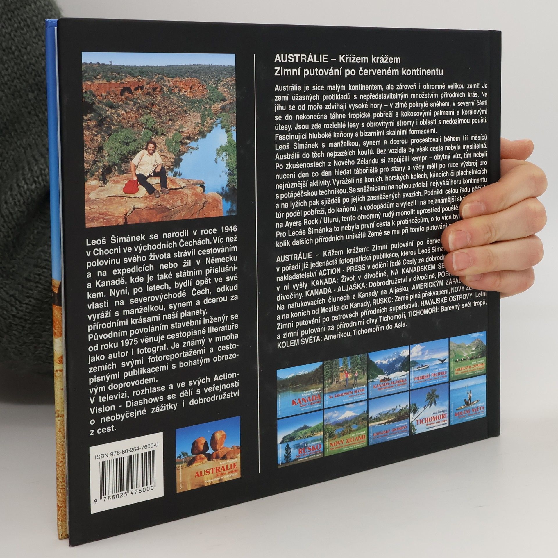 Podtitul: Křížem krážem - zimní putování po červeném kontinentu. Austrálie je sice tím nejmenším kontinentem, ale zároveň i ohromně velikou zemí! Je zemí úžasných protikladů s nepředstavitelným množstvím přírodních krás. Na jihu se od moře zdvihají vysoké hory – v zimě pokryté sněhem, v severní části se do nekonečna táhne tropické pobřeží s kokosovými palmami a korálovými útesy. Jsou zde rozlehlé lesy s obrovitými stromy i oblasti s nedozírnou pouští. Fascinující hluboké kaňony s bizardními skalními formacemi. Leoš Šimánek s manželkou, synem a dcerou procestoval během třech měsíců Austrálii do těch nejzazších koutů. Bez vlastního vozidla by však cesta nebyla dobře myslitelná. Po zkušenostech z Nového Zélandu si zapůjčili camper – obytný vůz, tím nebyli nuceni den co den hledat tábořiště pro stany a měli vždy po ruce výzbroj pro nejrůznější aktivity. Vyráželi na koních, horských kolech, kanoích či plachetnicích s potápěčskou technikou. Se sněžnicemi na nohou zdolali nejvyšší horu kontinentu a na lyžích pak sjížděli po jejích zasněžených svazích. Podnikli celou řadu pěších túr podél pobřeží, do kaňonů, k vodopádům a vylezli i na nejznámější skálu světa – na Ayers Rock (Uluru), tento ohromný rudý monolit uprostřed pouště. Pro Leoše Šimánka to nebyla první cesta k protinožcům, o to více byl překvapen, kolik dalších přírodních unikátů Země se mu při tomto putování podařilo poznat!