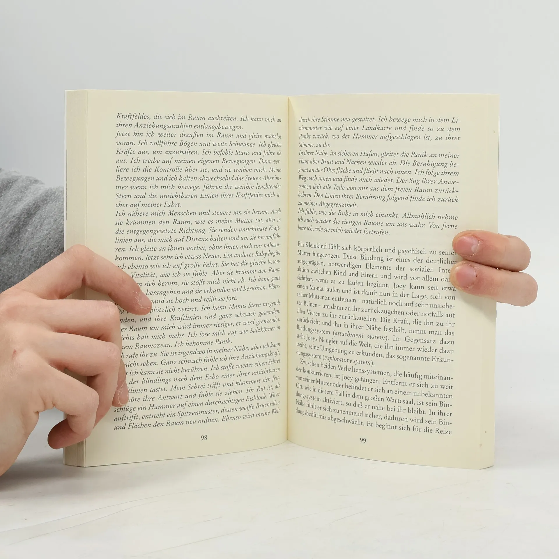 Was sieht, fühlt, erlebt ein Baby? Wie spürt es seinen Hunger? Wie nimmt es einen Sonnenfleck an der Wand, die Augen seiner Mutter, das Fließen der Zeit, den Raum seines Zimmers wahr? Wann fängt es an, »ich« zu denken? Die Entwicklung eines Kleinkinds – Szenen aus seinem Alltag von der sechsten Woche bis zum vierten Lebensjahr.