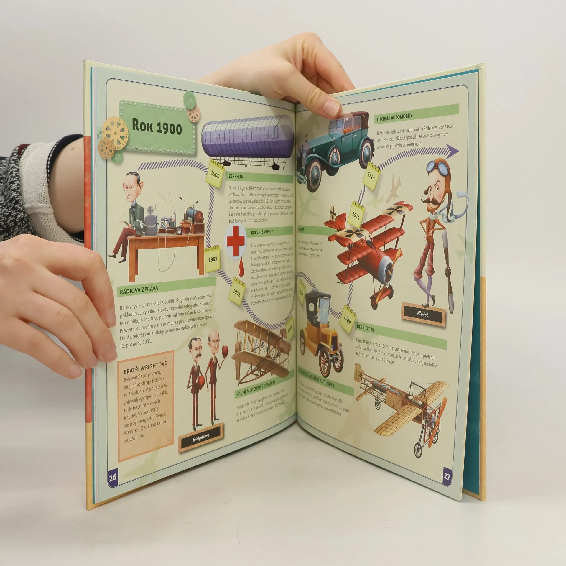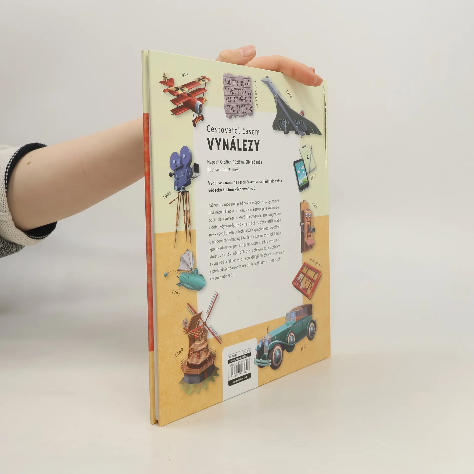 Začneme v roce 3500 před naším letopočtem, abychom si řekli něco o klínovém písmu a vynálezu papíru, kola nebo počítadla. Vynálezů, které dnes vypadají samozřejmě, ale v době, kdy vznikly, bylo k jejich objevu třeba větší fantazie, než k vývoji dnešních technických vymožeností. Skončíme u moderních technologií, tabletů a supermoderních letadel. Spolu s Albertem procestujeme časem všechna významná století, v nichž se něco důležitého vynalézalo a o každém vynálezů si řekneme to nejdůležitější.
