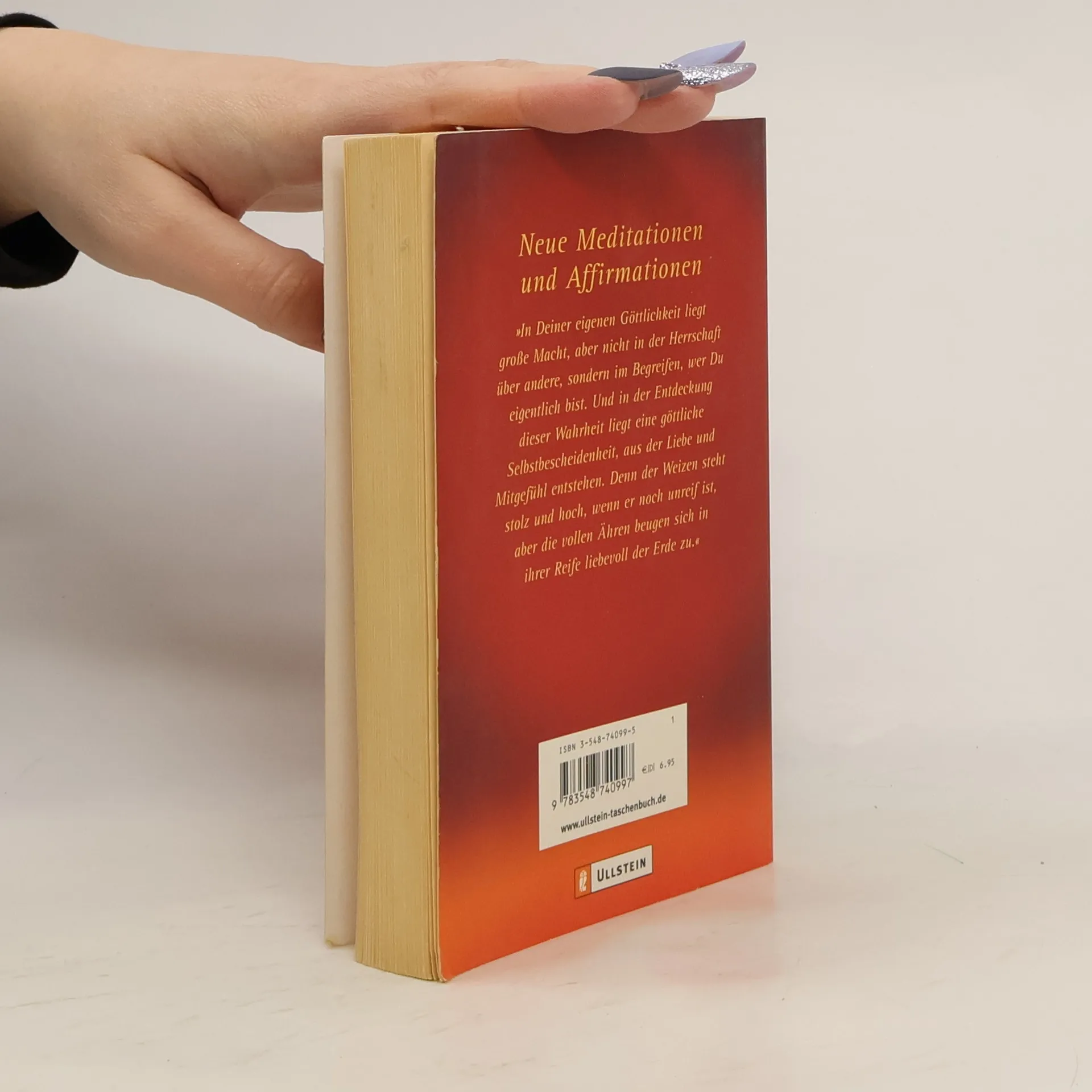 Neue Meditationen und Affirmationen 'In Deiner eigenen Göttlichkeit liegt große Macht, aber nicht in der Herrschaft über andere, sondern im Begreifen, wer Du eigentlich bist. Und in der Entdeckung dieser Wahrheit liegt eine göttliche Selbstbescheidenheit, aus der Liebe und Mitgefühl entstehen. Denn der Weizen steht stolz und hoch, wenn er noch unreif ist, aber die vollen Ähren beugen sich in ihrer Reife liebevoll der Erde zu.'