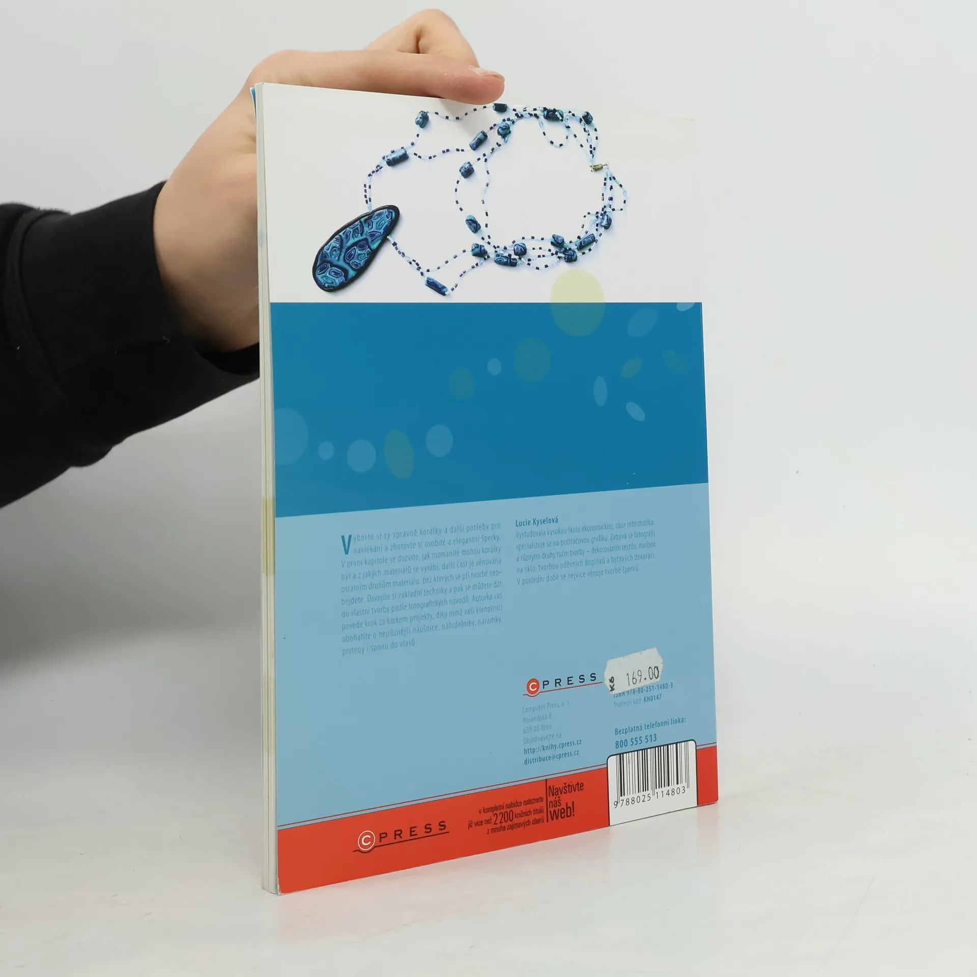 Vyberte si ty správné korálky a další potřeby pro navlékání a zhotovte si osobité a elegantní šperky. V první kapitole se dozvíte, jak rozmanité mohou korálky být a z jakých materiálů se vyrábí, další část je věnována ostatním druhům materiálu, bez kterých se při tvorbě neobejdete. Osvojíte si základní techniky a pak se můžete dát do vlastní tvorby podle fotografických návodů. Autorka vás povede krok za krokem projekty, díky nimž vaši klenotnici obohatíte o nejrůznější náušnice, náhrdelníky, náramky, prsteny i sponu do vlasů. Vyberte si ty správné korálky a další potřeby pro navlékání a zhotovte si osobité a elegantní šperky. V první kapitole se dozvíte, jak rozmanité mohou korálky být a z jakých materiálů se vyrábí, další část je věnována ostatním druhům materiálu, bez kterých se při tvorbě neobejdete. Osvojíte si základní techniky a pak se můžete dát do vlastní tvorby podle fotografických návodů. Autorka vás povede krok za krokem projekty, díky nimž vaši klenotnici obohatíte o nejrůznější náušnice, náhrdelníky, náramky, prsteny i sponu do vlasů. O autorce: Lucie Kyselová Vystudovala Vysokou školu ekonomickou, obor informatika, specializuje se na počítačovou grafiku. Zabývá se fotografií a různými druhy ruční tvorby dekorováním textilu, malbou na sklo, tvorbou oděvních doplňků a bytových dekorací. V poslední době se nejvíce věnuje tvorbě šperků.
