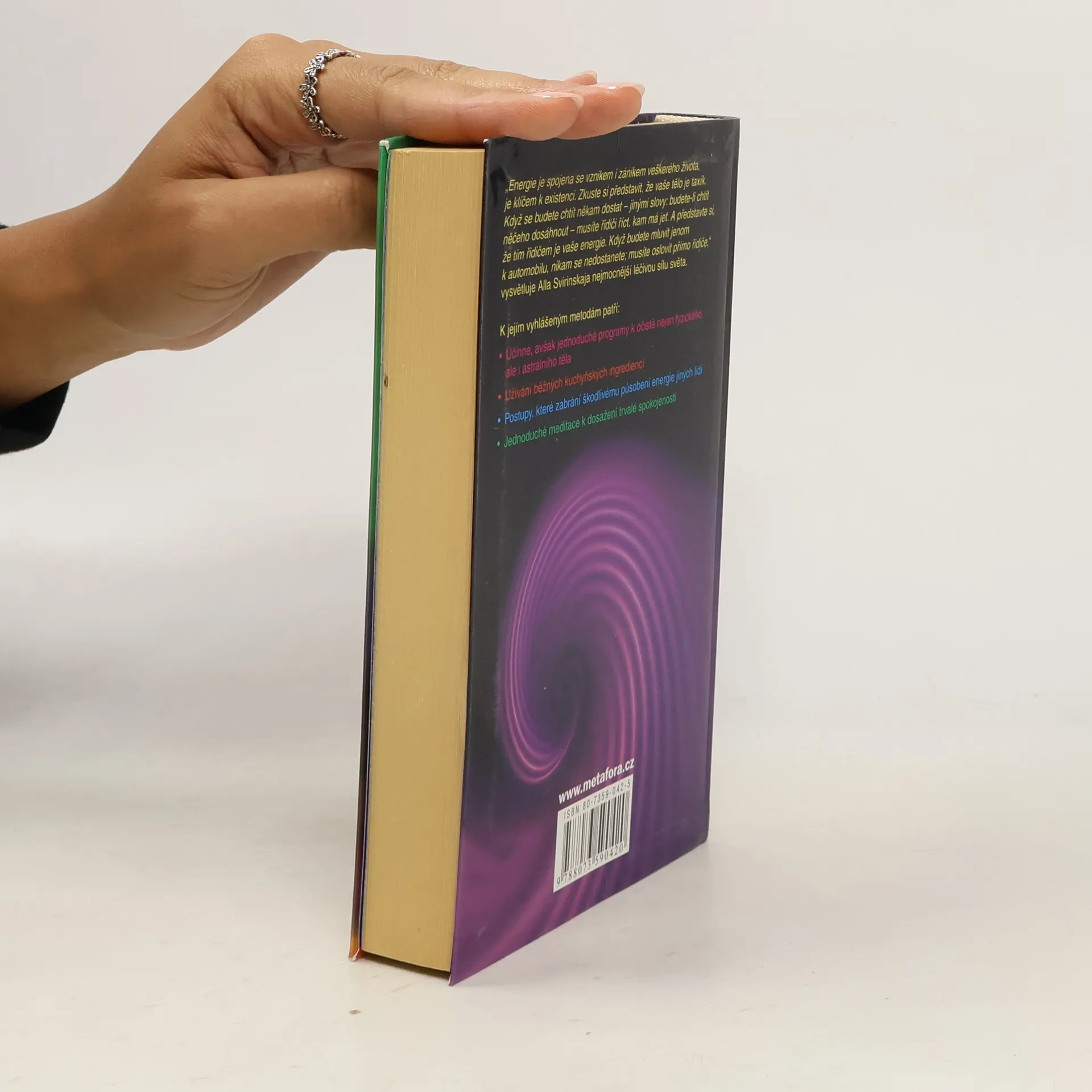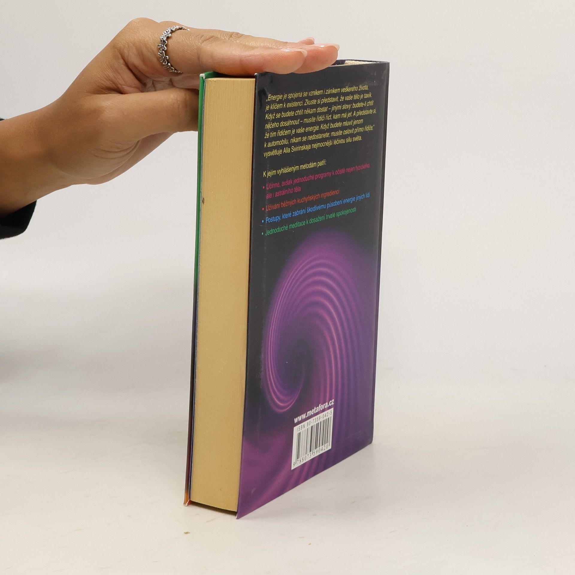 Tajemství celkové pohody spočívá ve zvládnutí životní energie. Všechny ty diety, potravinové doplňky, cvičení a terapie mohou fungovat (konečně!) jen tehdy, jestliže je dokážete propojit se samou podstatou energetického toku. Tato práce odhaluje zapomenutou moudrost léčitelských postupů z celého světa, včetně tradičních metod, jež Alla Svirinskaja zdědila po ruských předcích. Ve své knize nás poprvé seznamuje se svým unikátním postojem k dávným postupům - přizpůsobených ovšem modernímu člověku. Její ucelený přístup k fyzickým, emočním, mentálním a spirituálním oblastem změní váš život. Praktikujte Allin program krok za krokem a staňte se vlastními léčiteli. K jejím vyhlášeným metodám patří: * Intenzivní, avšak jednoduché detoxikační programy využívající kuchyňské ingredience * Ochranné postupy pro každodenní emoční výměnu s ostatními lidmi * Jednoduché meditace pro dosažení trvalé spokojenosti.