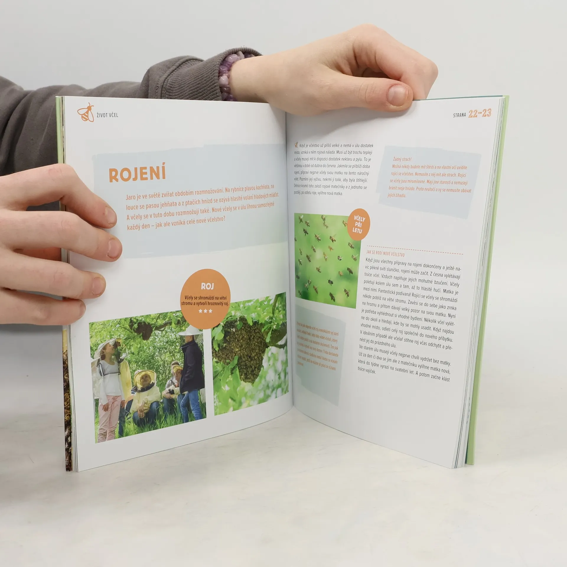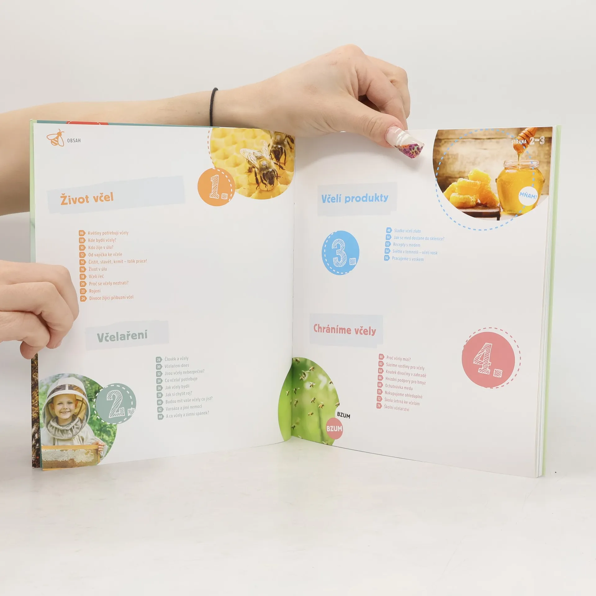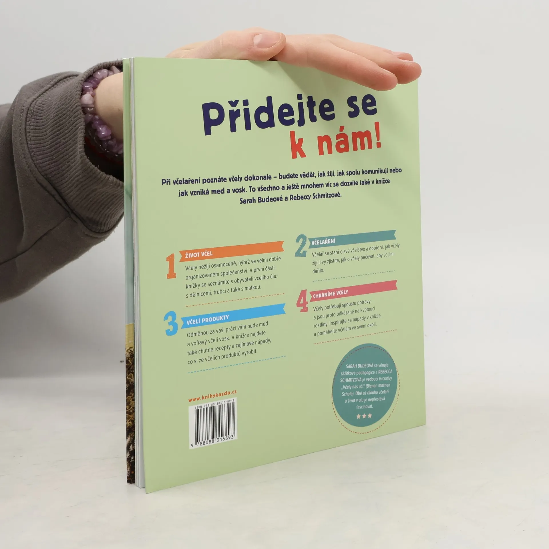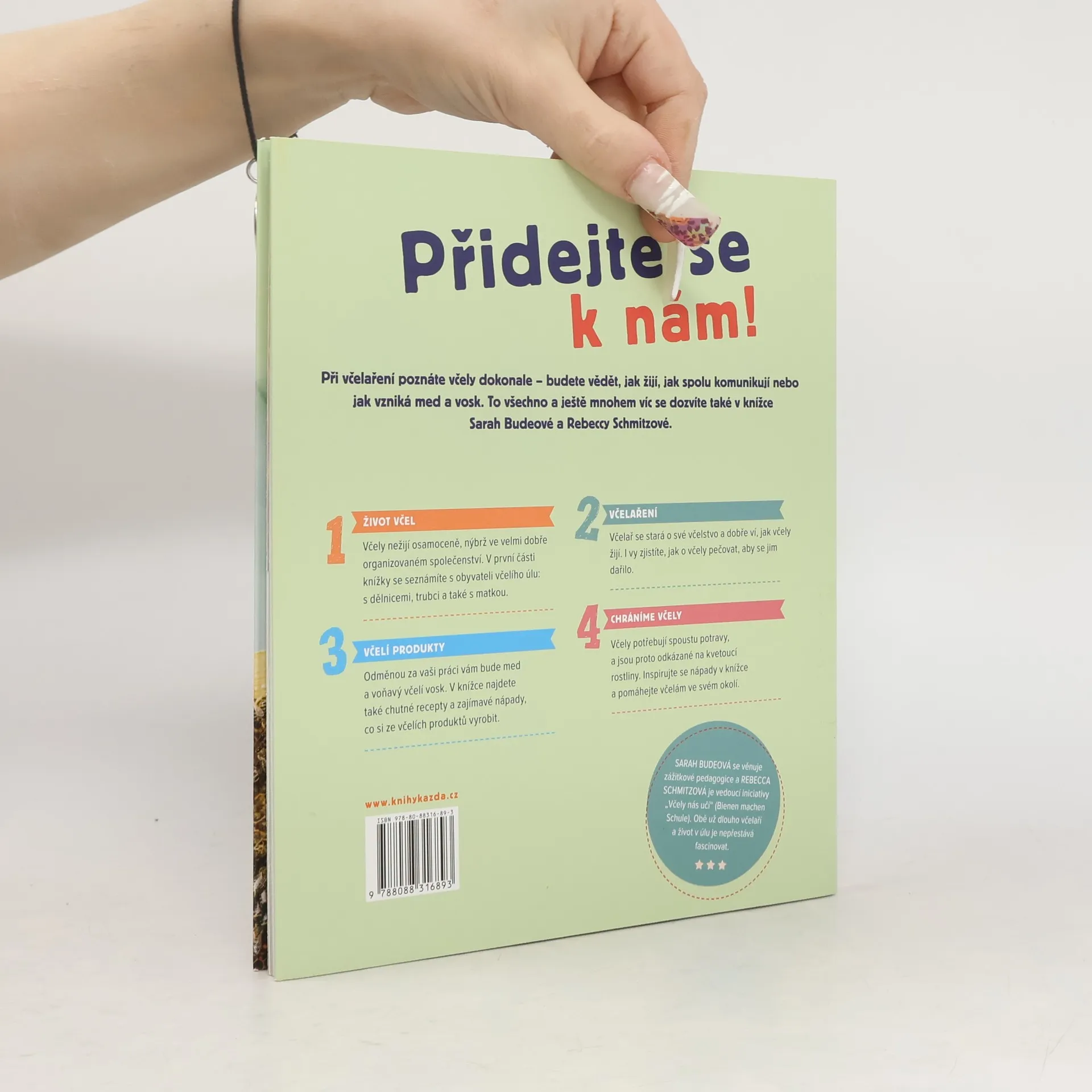 Při včelaření poznáte včely dokonale - budete vědět, jak žijí, jak spolu komunikují nebo jak vzniká med a vosk. To všechno a ještě mnohem víc se dozvíte také v knížce Sarah Budeové a Rebeccy Schmitzové. 1. Život včel Včely nežijí osamoceně, nýbrž ve velmi dobře organizovaném společenství. V první části knížky se seznámíte s obyvateli včelího úlu: s dělnicemi, trubci a také s matkou. 2. Včelaření Včelař se stará o své včelstvo a dobře ví, jak včely žijí. I vy zjistíte, jak o včely pečovat, aby se jim dařilo. 3. Včelí produkty Odměnou za vaši práci vám bude med a voňavý včelí vosk. V knížce najdete také chutné recepty a zajímavé nápady, co si ze včelích produktů vyrobit. 4. Chráníme včely Včely potřebují spoustu potravy, a jsou proto odkázané na kvetoucí rostliny. Inspirujte se nápady v knížce a pomáhejte včelám ve svém okolí.