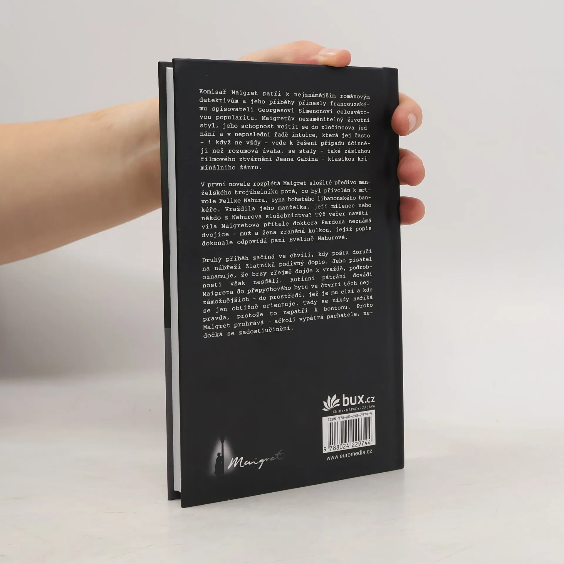 V první novele rozplétá Maigret složité předivo manželského trojúhelníku poté, co byl přivolán k mrtvole Felixe Nahura, nezvedeného syna bohatého libanonského bankéře. Vraždila jeho manželka, její milenec nebo někdo z Nahurova služebnictva? Týž večer navštívila Maigretova přítele doktora Pardona neznámá dvojice – muž a žena zraněná kulkou, jejíž popis dokonale odpovídá paní Evelině Nahurové. Druhý příběh začíná ve chvíli, kdy pošta doručí na nábřeží Zlatníků podivný dopis . Jeho pisatel oznamuje, že v nejbližší době zřejmě dojde k vraždě, podrobnosti však nesdělí. Rutinní pátrání dovádí Maigreta do přepychového bytu ve čtvrti těch nejzámožnějších – do prostředí, jež je mu cizí a v němž se jen obtížně orientuje. Tady se nikdy neříká pravda, protože to nepatří k bontonu. Proto Maigret prohrává – a i když pak vypátrá pachatele vraždy, nedočká se potřebného zadostiučinění.