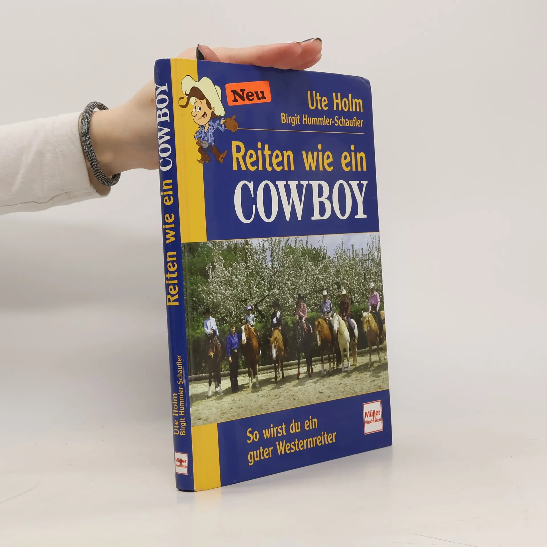 Die erfolgreiche Westerntrainerin und aktive Turnierreiterin Ute Holm hat mit der Journalistin Birgit Hummler-Schaufler ein gut strukturiertes Buch zum Thema Westernreiten für Kinder und Jugendliche entwickelt. Neben dem Basiswissen (z. B. „Was ist eigentlich Westernreiten“ oder „Bevor es in den Sattel geht“) zeigt Ute Holm, die aufgrund ihrer Arbeit mit Kindern viel Erfahrungen in den letzten Jahren sammeln konnte, wie es geht. Sie erklärt die Hilfen, das Reiten in den verschiedenen Gangarten, die wichtigsten Lektionen usw. Das Ziel der Autorinnen ist, dass Kindern und Jugendlichen ein verlässlicher und vor allem verständlicher Ratgeber an die Hand gegeben wird. Neben Bildern aus dem Unterricht und Aufnahmen, die das Feeling für das Westernreiten vermitteln, sollen Comic-Zeichnungen die jugendbuch-gerechte Aufmachung garantieren.