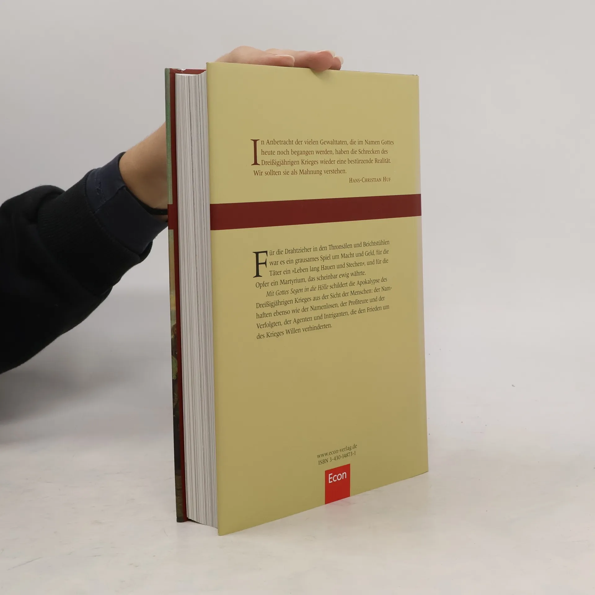 Für die politischen und klerikalen Drahtzieher war es ein grausames Spiel um Macht und Geld, für die Täter ein „Leben lang Hauen und Stechen“, für die Opfer ein Martyrium, das scheinbar ewig währte. Mit Gottes Segen in die Hölle schildert die apokalyptischenEreignisse des Dreißigjährigen Krieges aus der Sicht der Menschen: der Namhaften und der Namenlosen, der Profiteure und der Verfolgten, der Agenten und Intriganten.