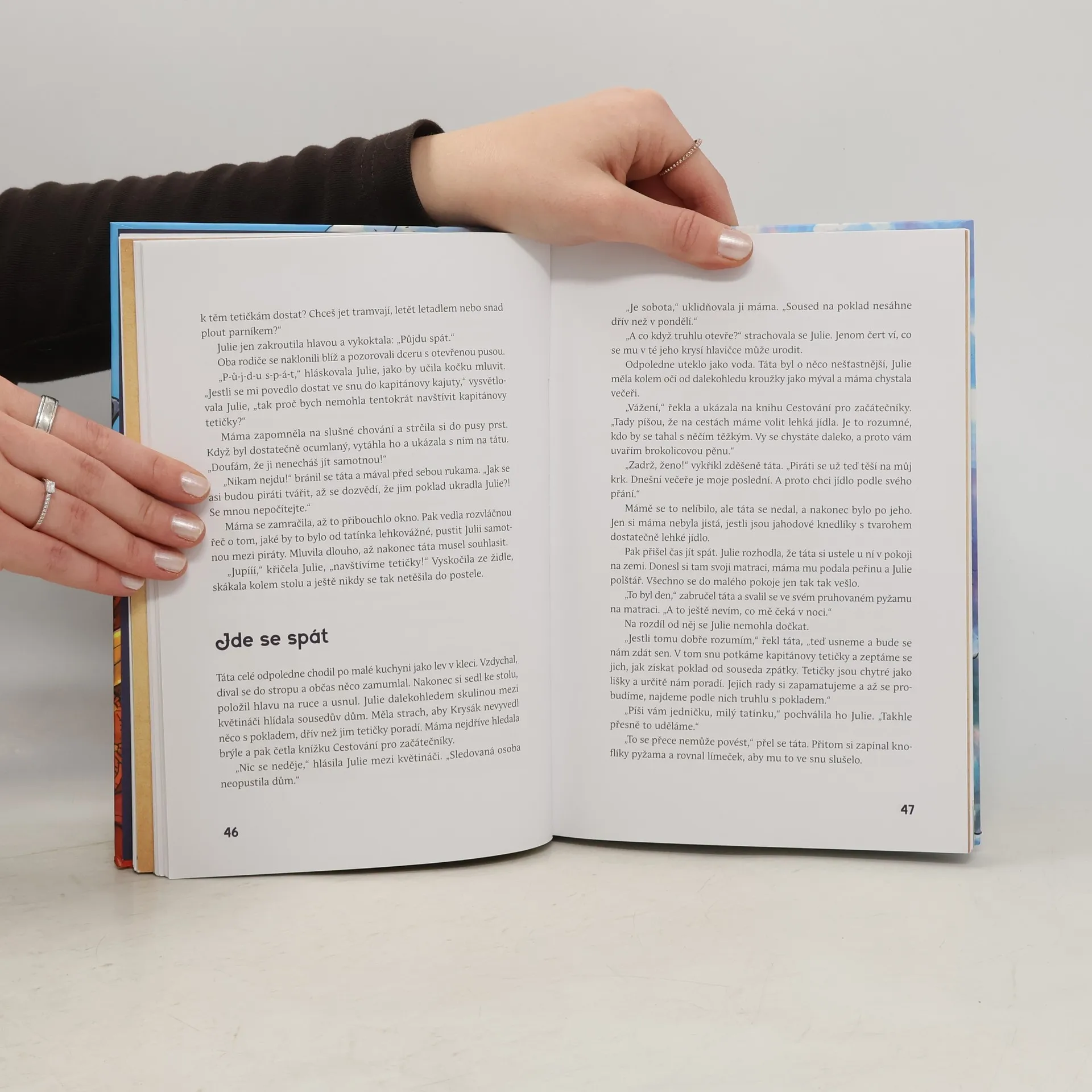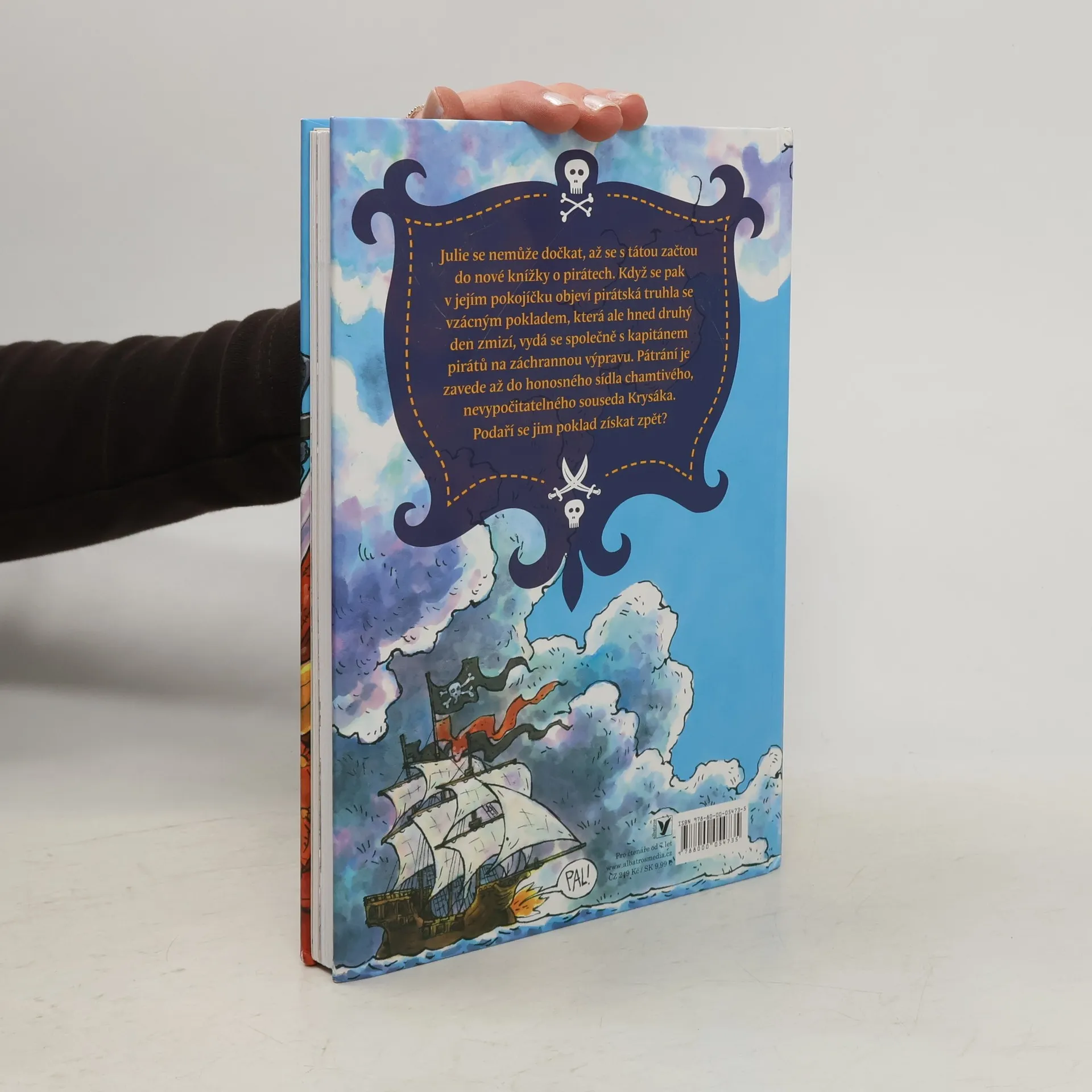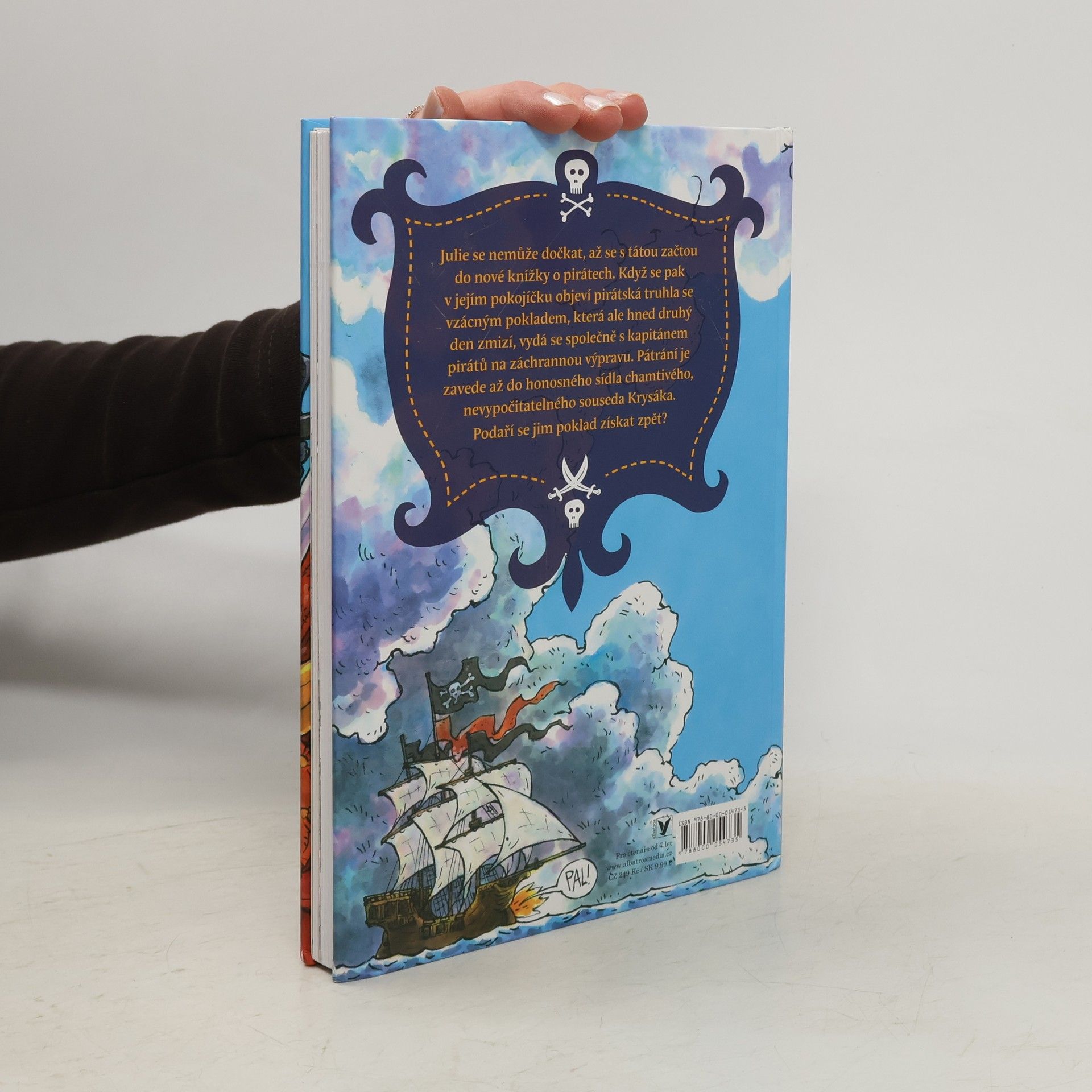 Julie se nemůže dočkat, až se s tátou začtou do nové knížky o pirátech. Když se pak v jejím pokojíčku objeví pirátská truhla se vzácným pokladem, která ale hned druhý den zmizí, vydá se společně s kapitánem pirátů na záchrannou výpravu. Pátrání je zavede až do honosného sídla chamtivého, nevypočitatelného souseda Krysáka. Podaří se jim poklad získat zpět?