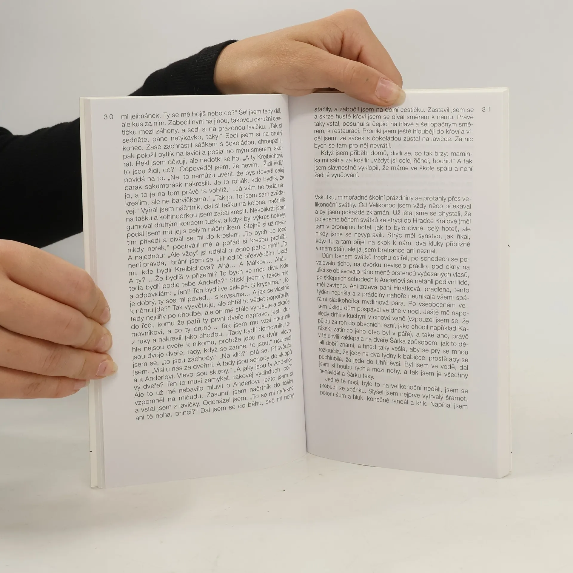 Autor na záložku napsal: "Cyklus próz nebyl psán pro nikoho. Obklopen cizojazyčnou civilizací, jinak se vyjadřující přírodou, byl jsem Robinsonem Crusoem, jehož Pátek ani v neděli neuměl číst, byl jsem admirálem Byrdem na Severním pólu ve chvíli, když přestal pracovat ruční telegraf, byl jsem... Nikdo se neozýval. Ani ozvěna. Bez očitých svědků, bez důkazů, že jsem kdy s někým chodil do školy či pásl husy či kopal do míče, vymýšlel jsem si pravdu o dětství. Odpovídal jsem česky, nač se nikdo netázal..." František Listopad (1921) žije v Portugalsku.