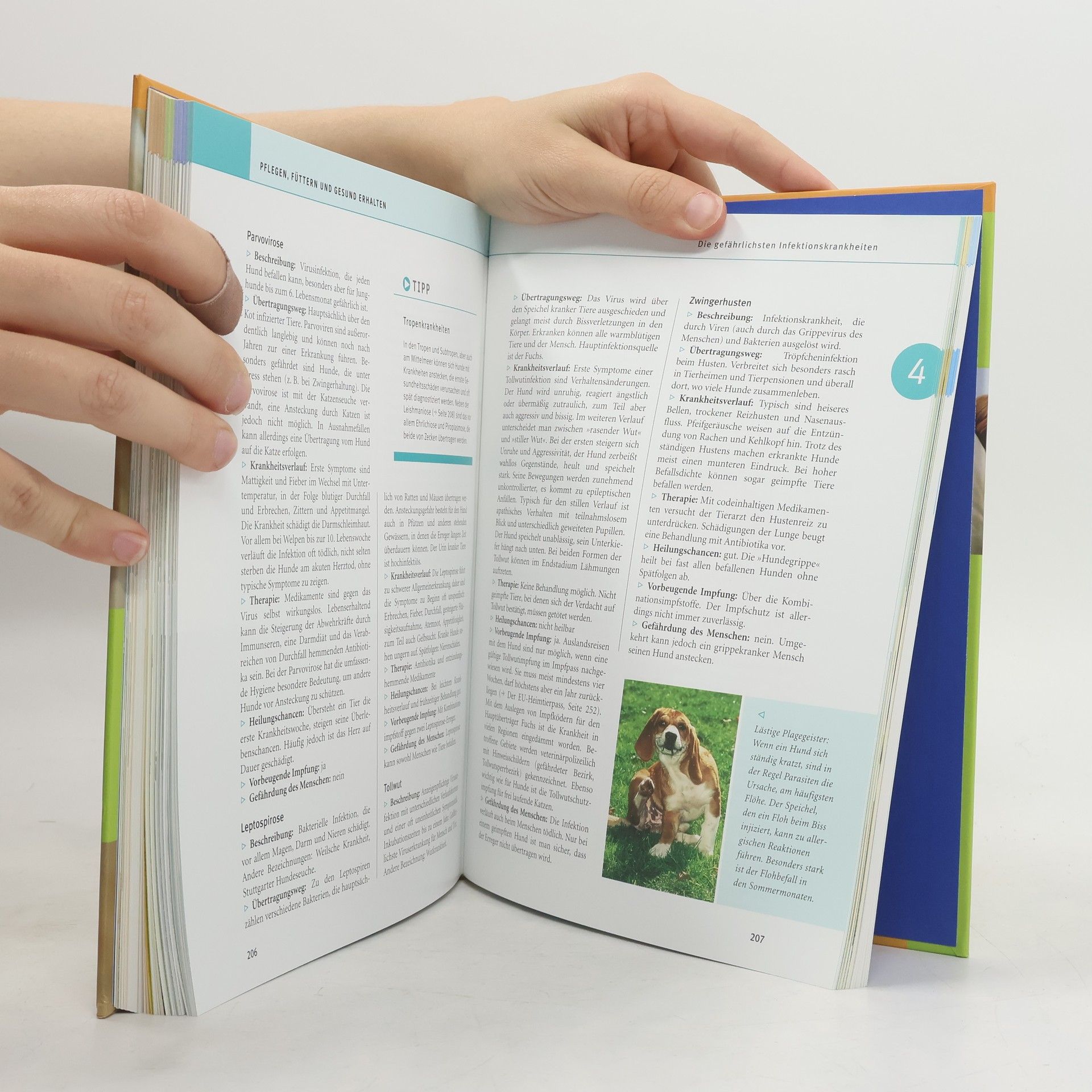 Dieses Praxishandbuch vermittelt alles, was man wissen muss, um einen Hund richtig zu halten und zu pflegen, ihn artgerecht zu ernähren und vor Krankheiten zu schützen, ihn sinnvoll zu beschäftigen und sportlich zu fordern. Sie erfahren Wichtiges über Herkunft, ererbte Verhaltensweisen, Persönlichkeit, soziale Bedürfnisse und Grundlagen einer harmonischen Mensch-Tier-Beziehung. Der Rasseteil porträtiert die beliebtesten Hunderassen in Wort und Bild - mit Eignungsempfehlungen für Familie, Singles und Senioren. Darüber hinaus bietet das Handbuch eine Vielzahl praxisorientierter Tipps, hilfreicher Checklisten, Tabellen und Tests sowie aktuelle Forschungsergebnisse. Der „Quickfinder“ schließlich bietet kompaktes Wissen auf einen Blick - von A wie Apportieren bis Z wie Zahnpflege.