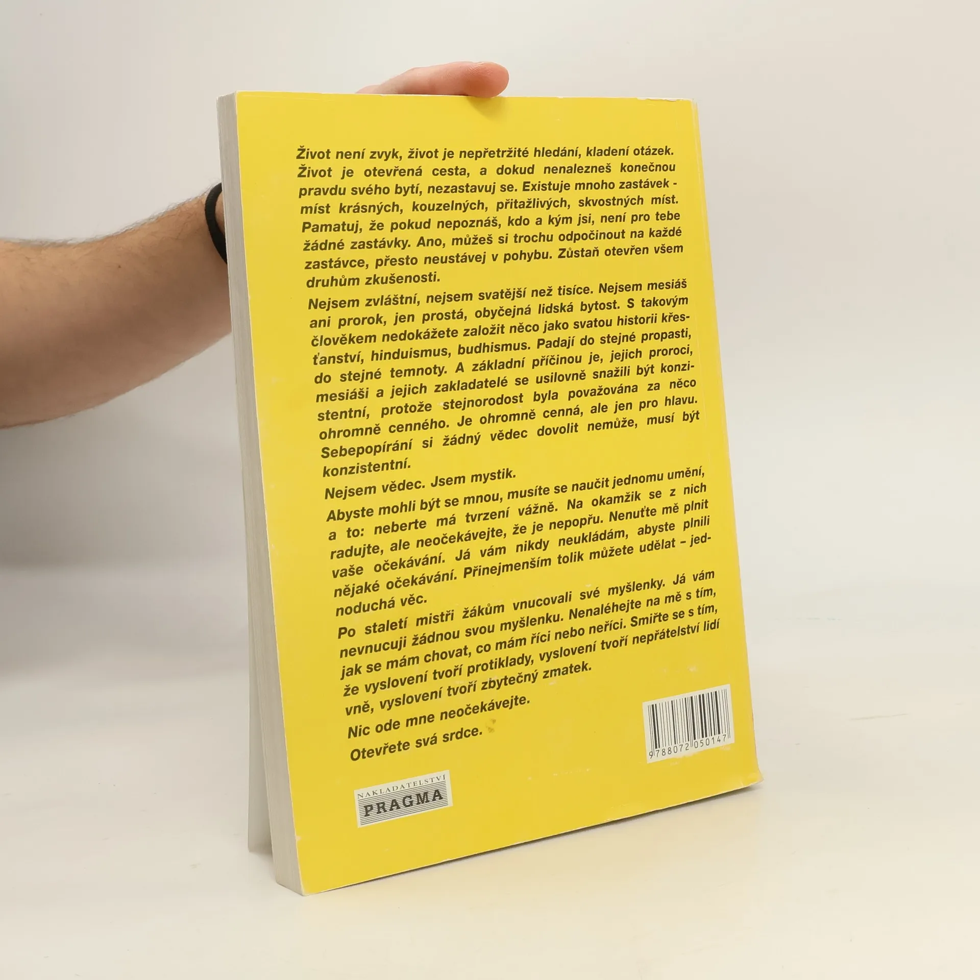 Život není zvyk, život je nepřetržité hledání, kladení otázek. Život je otevřená cesta, a dokud nenalezneš konečnou pravdu svého bytí, nezastavuj se. Existuje mnoho zastávek míst krásných, kouzelných, přitažlivých, skvostných míst. Pamatuj, že pokud nepoznáš, kdo a kým jsi, není pro tebe žádné zastávky. Ano, můžeš si trochu odpočinout na každé zastávce, přesto neustávej v pohybu. Zůstaň otevřen všem druhům zkušenosti.