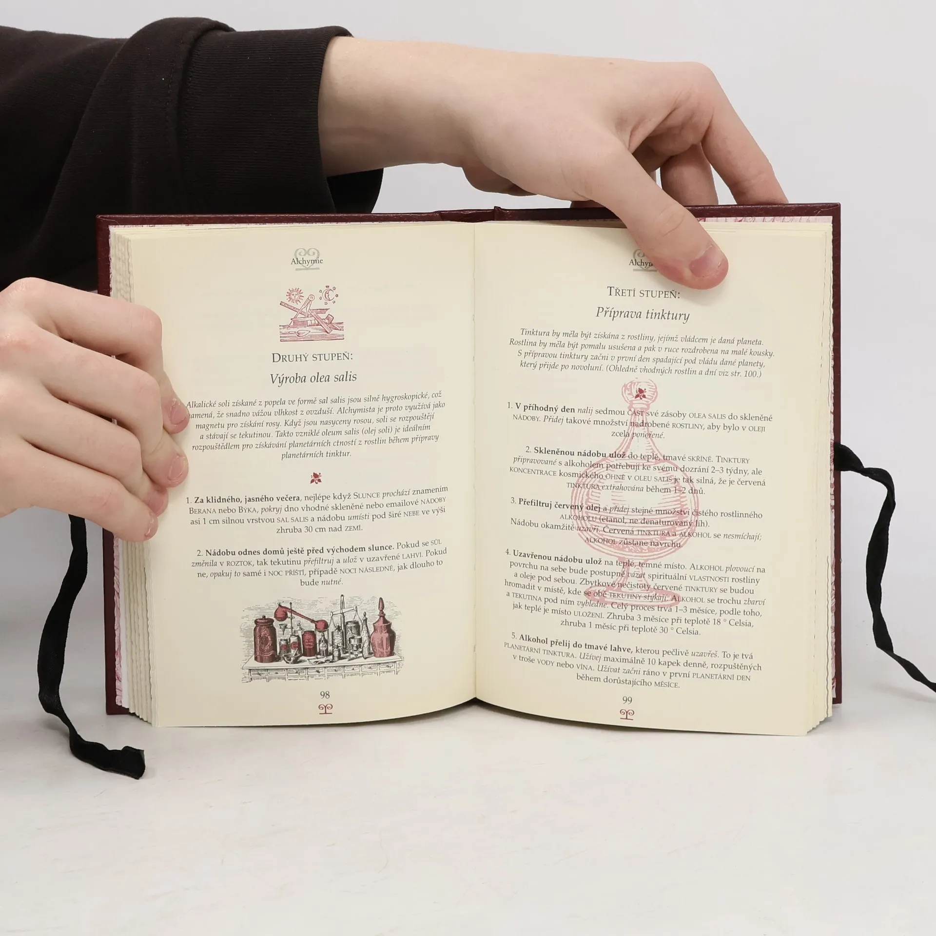 Nádherně upravená "příručka čarodějnictví", v podobě tradičních dávných grimoirů, tedy učebnic čarodějnictví - včetně vázání, kreseb a rytin i ozdobného papíru. Kniha seznámí čtenáře se základy hermetického učení, s tarotem, alchymií, s bílou magií, s mocí talismanů, pentagramy, magickými čtverci a kabalou apod. a to vše ve stručné, srozumitelné formě až k prvním "pokusům". Všechny představované a nabízené techniky čarování jsou přitom představeny jako bílá magie - tedy čarování neubližující. Čarování může být sice bráno jako zábava, ale především je to zahrávání si s vyššími silami (ať už tomu někdo věří, nebo ne). Autor upozorňuje, že nelze tyto praktiky brát jako techniku, která člověku pomůže vypořádat se s vlastním životem. O čarování, pokud je bráno jen trochu vážně, se může pokoušet pouze člověk vyrovnaný a připravený.... celý text