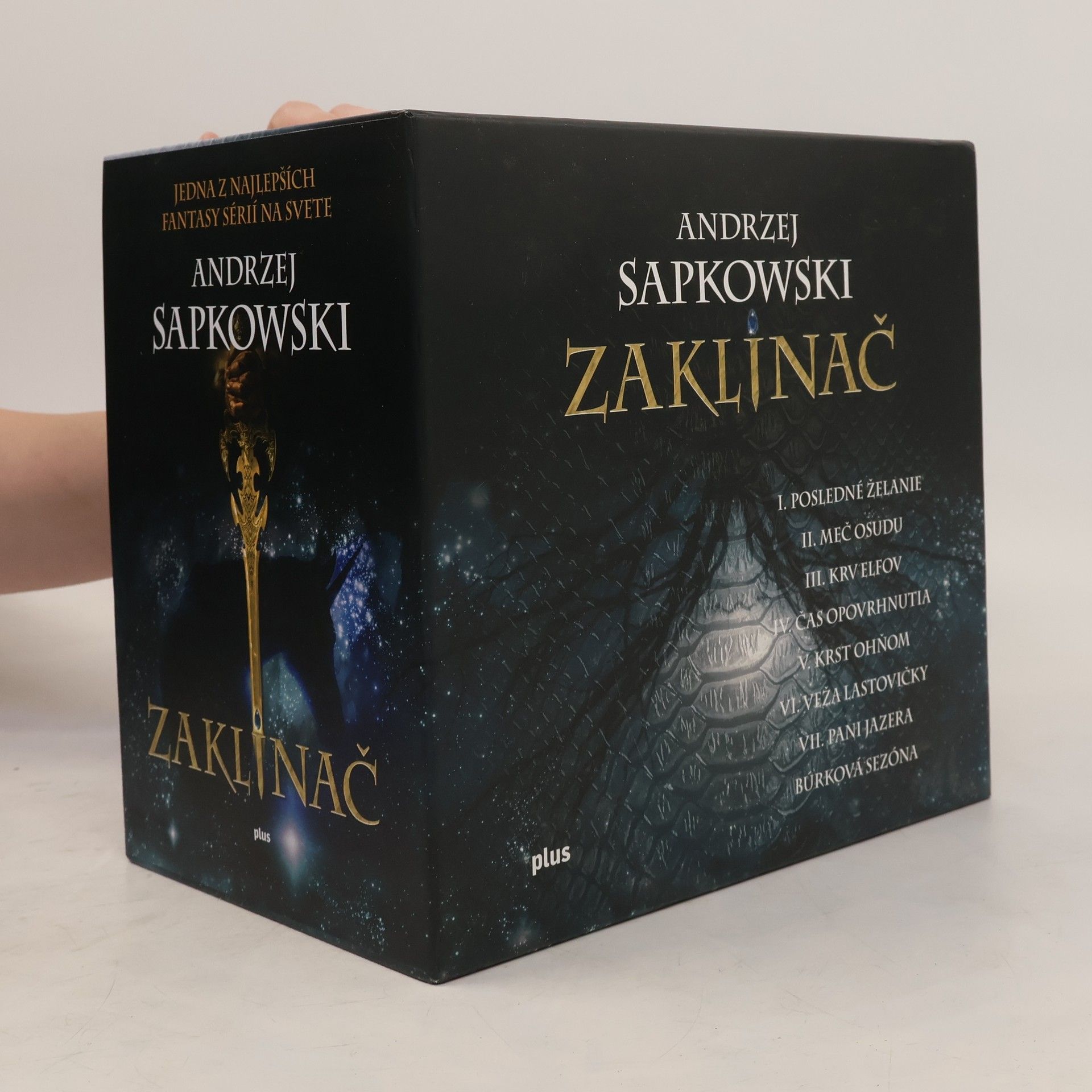 Exkluzívne vydanie jednej z najúspešnejších fantasy sérií na svete. Siahnite po doplnenom vydaní kultovej ságy Zaklínač z pera majstra Andrzeja Sapkowského. Box obsahuje všetkých 8 kníh o zaklínačovi Geraltovi z Rivie. Už viac ako storočie panuje medzi ľuďmi, trpaslíkmi, gnómami a elfmi zdanlivý mier. Ale časy sa menia, na dočasné prímerie všetci rýchlo zabudli a pustili sa do boja. Veď predsa jediný dobrý elf je mŕtvy elf. Bielovlasý lovec netvorov Geralt z Rivie známy ako zaklínač, čaká na narodenie prorokovaného dieťaťa. To bude mať moc zmeniť svet, nik však netuší, či sa obráti k dobru alebo k zlu. Nad krajinou sa vznáša hrozba zničujúcej vojny a o hlavu očakávaného dieťaťa bojuje priveľa živlov. Geralt však dostal za úlohu ochrániť dieťa za každú cenu. Čo môže byť problém, keďže zaklínač nikdy neprehráva. Špeciálne vydanie boxu Zaklínač obsahuje tituly: Posledné želanie Meč osudu Krv elfov Čas opovrhnutia Krst ohňom Veža lastovičky Pani jazera Búrková sezóna