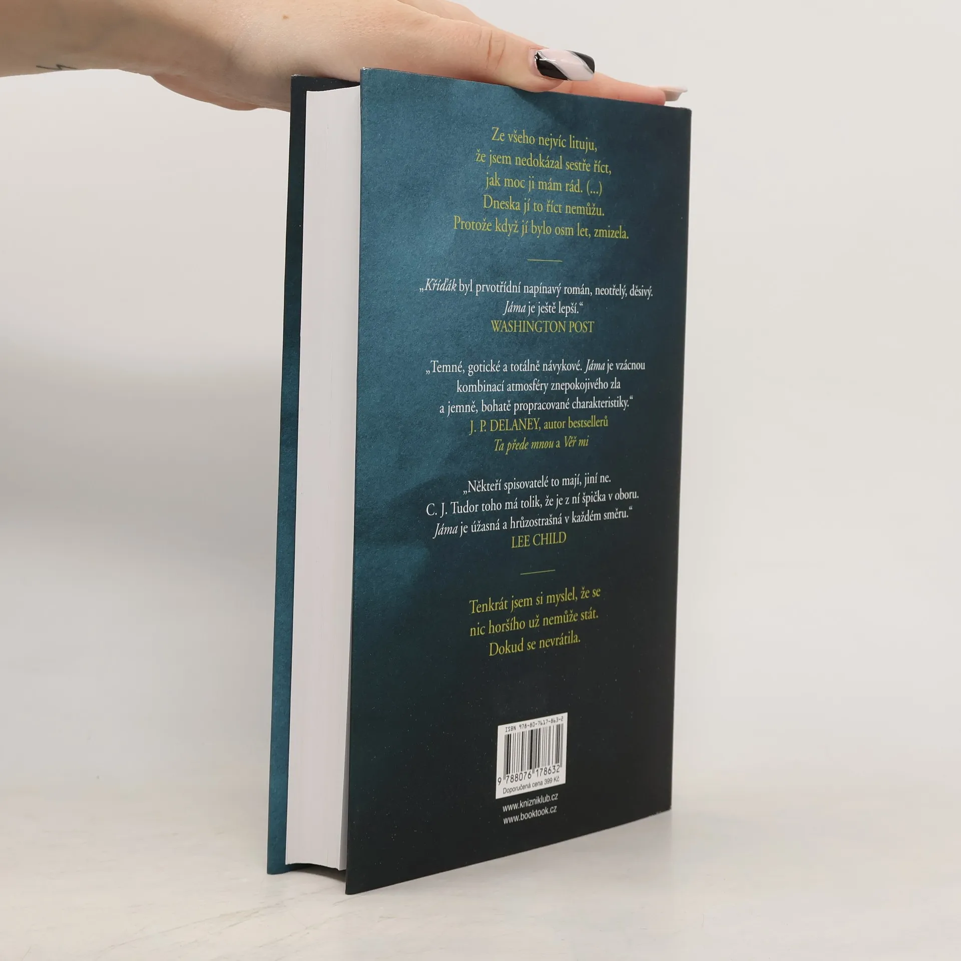 Kříďák, drásavý a děsivý psychothriller C. J. Tudor, se stal nejúspěšnější knižní prvotinou roku 2018. Nyní je tu Jáma, příběh, v němž autorka co do hrůznosti a napětí ještě přitvrdila... Joe se nikdy nechtěl vrátit do rodného Arnhillu. Ne potom, co zažil se svou partou: šikanu, zradu, sebevraždu. Ne potom, co zmizela jeho sestra Annie. Ne potom, co přišel o rodiče. Ale Joe nemá na vybranou. Protože to, co se kdysi stalo Annie, se děje zase. Protože minulost má ve zvyku se vracet. Protože nejhorší den Joeova života nebyl ten, kdy se jeho sestra ztratila, ale ten, kdy se vrátila.