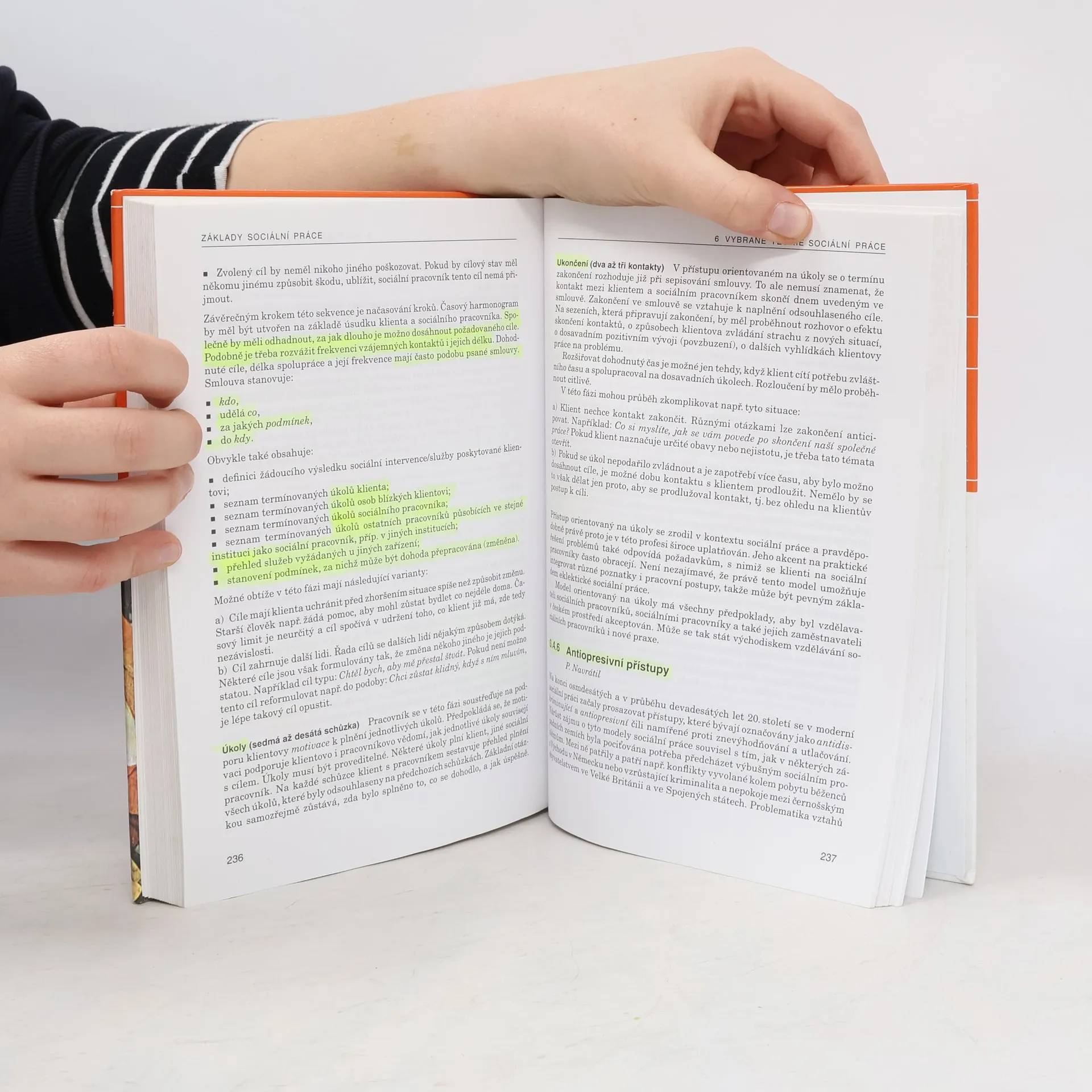 Publikace nabízí základní orientaci v problematice sociální práce. Obsahuje úvodní teoretickou a hlavní výzkumnou část, která se věnuje názorům odborníků na sociální práci v kontextu současnosti. Původní česká učebnice základů dynamicky se rozvíjejícího oboru seznamuje s historií i současnými přístupy v sociální práci. Představuje filozofická a náboženská východiska sociální práce, historický vývoj oboru ve světě i u nás, vztah sociální politiky a sociální práce. Podrobně se věnuje významným současným paradigmatům a teoriím sociální práce (mimo jiné přístupy humanistickému, existenciálnímu, systemickému, kognitivně-behaviorálnímu, antiopresivnímu, sociobiologii). Autoři rovněž analyzují různé modely v práci s menšinami a ilustrují je příklady z praxe u nás i v zahraničí. Kniha je určena studentům sociální práce, sociální pedagogiky a příbuzných oborů na univerzitách a vyšších odborných školách, sociálním pracovníkům v praxi, odborníkům v oblasti sociální politiky a státní správy