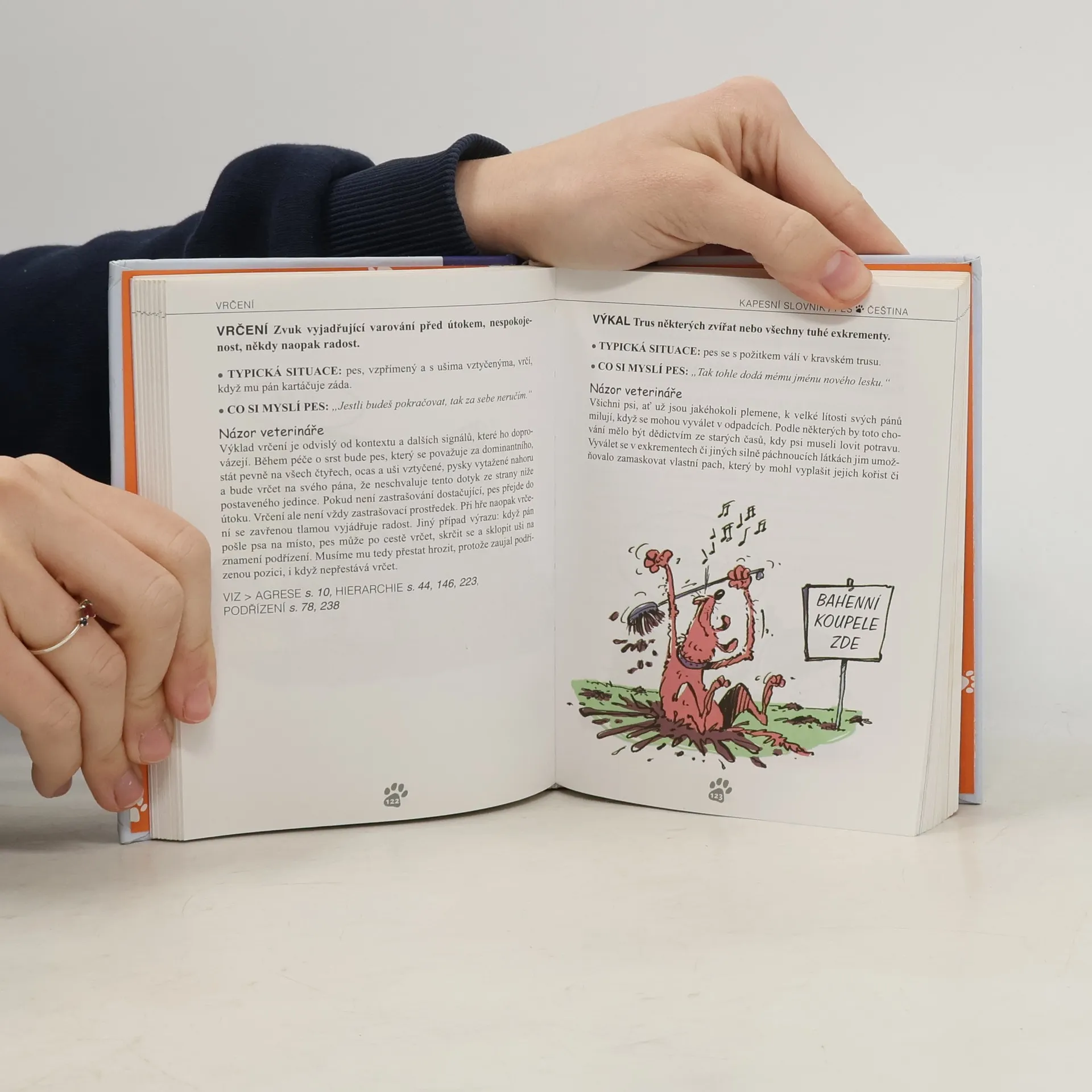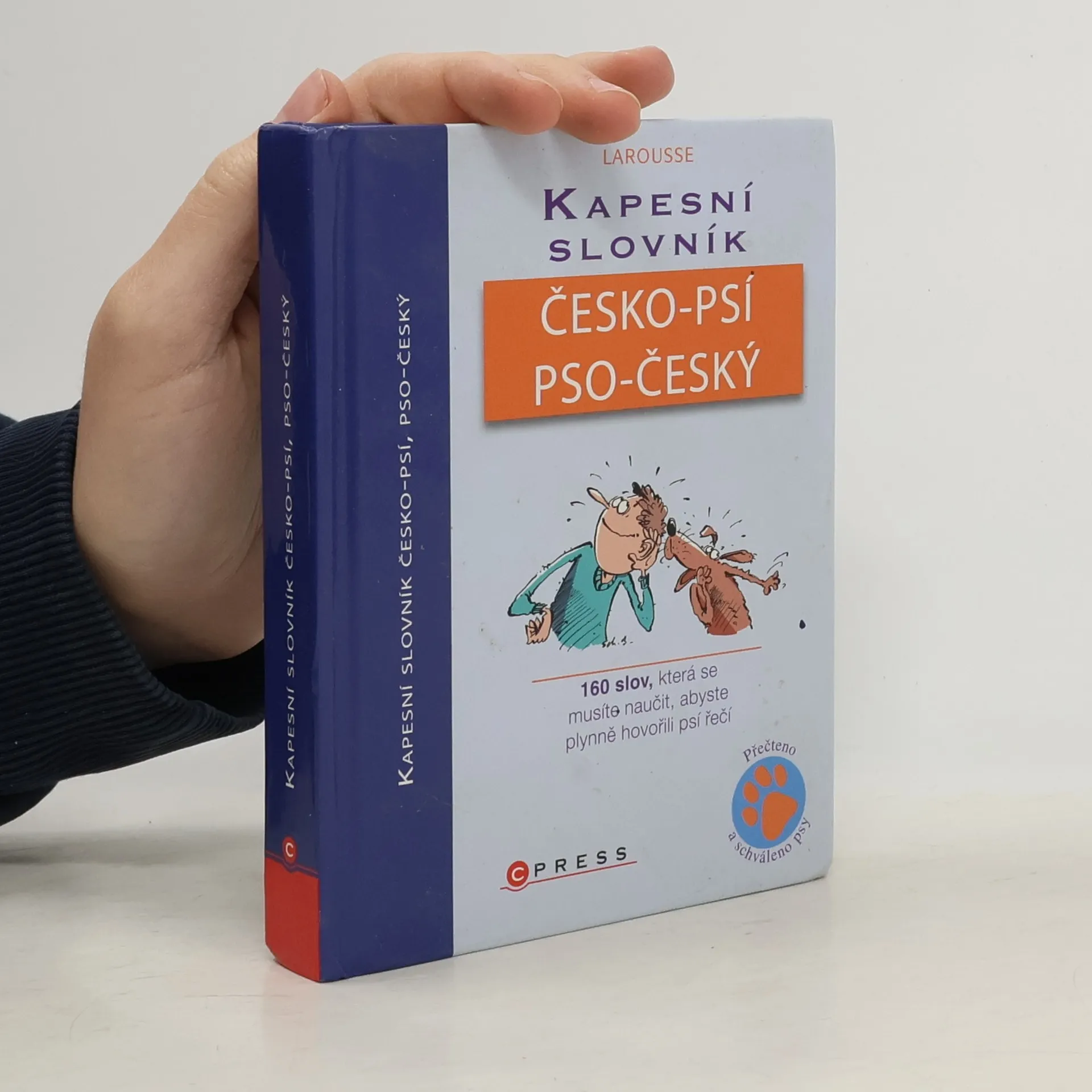 První oboustranný kapesní slovník, který hovoří jak psí řečí, tak i slovy jejich pánů. Nepostradatelný průvodce komunikací mezi člověkem a jeho psem (či psem a jeho člověkem) převádí chování a každodenní situace těchto dvou živočišných druhů do lidské a psí řeči pomocí 160 klíčových slov seřazených od A do Z: např.: agrese, blecha, čich, deprese, falešná březost, hierarchie, kastrace ale také automobil, hra, kočka, nečistotnost, obskakování, poštovní doručovatel, sexualita, trest... Něžný, ale občas i konfliktní vztah mezi člověkem a psem doprovází více než 100 humorných kreseb.... celý text