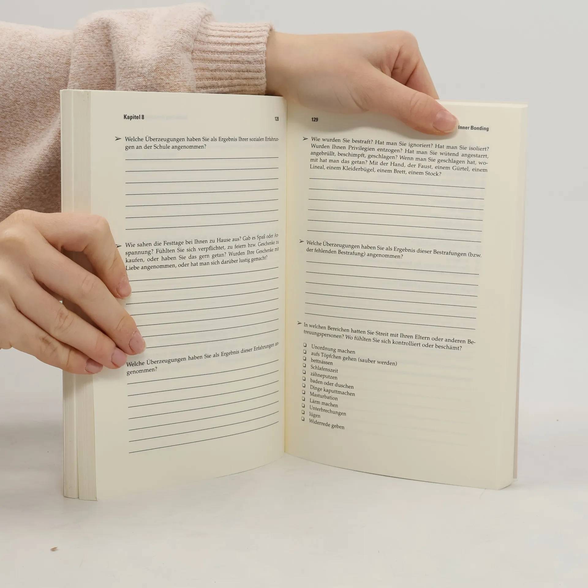 Das Arbeitsbuch zum Bestseller Aussöhnung mit dem inneren Kind Mit diesem Arbeitsbuch ermöglichen Erika J. Chopich und Margaret Paul die praktische Anwendung der bahnbrechenden Prinzipien, die sie in ihrem internationalen Bestseller Aussöhnung mit dem inneren Kind präsentiert haben. Sie weisen Ihnen den Weg zum »Inner Bonding« - dem Aufbau einer liebevollen Beziehung zwischen dem inneren Kind und dem inneren Erwachsenen. So wird es Ihnen gelingen, seelische Wunden zu heilen und ein glückliches Verhältnis zu sich selbst und zu Ihrer Umwelt herzustellen - nicht zuletzt im Sinne einer erfüllten Partnerschaft.