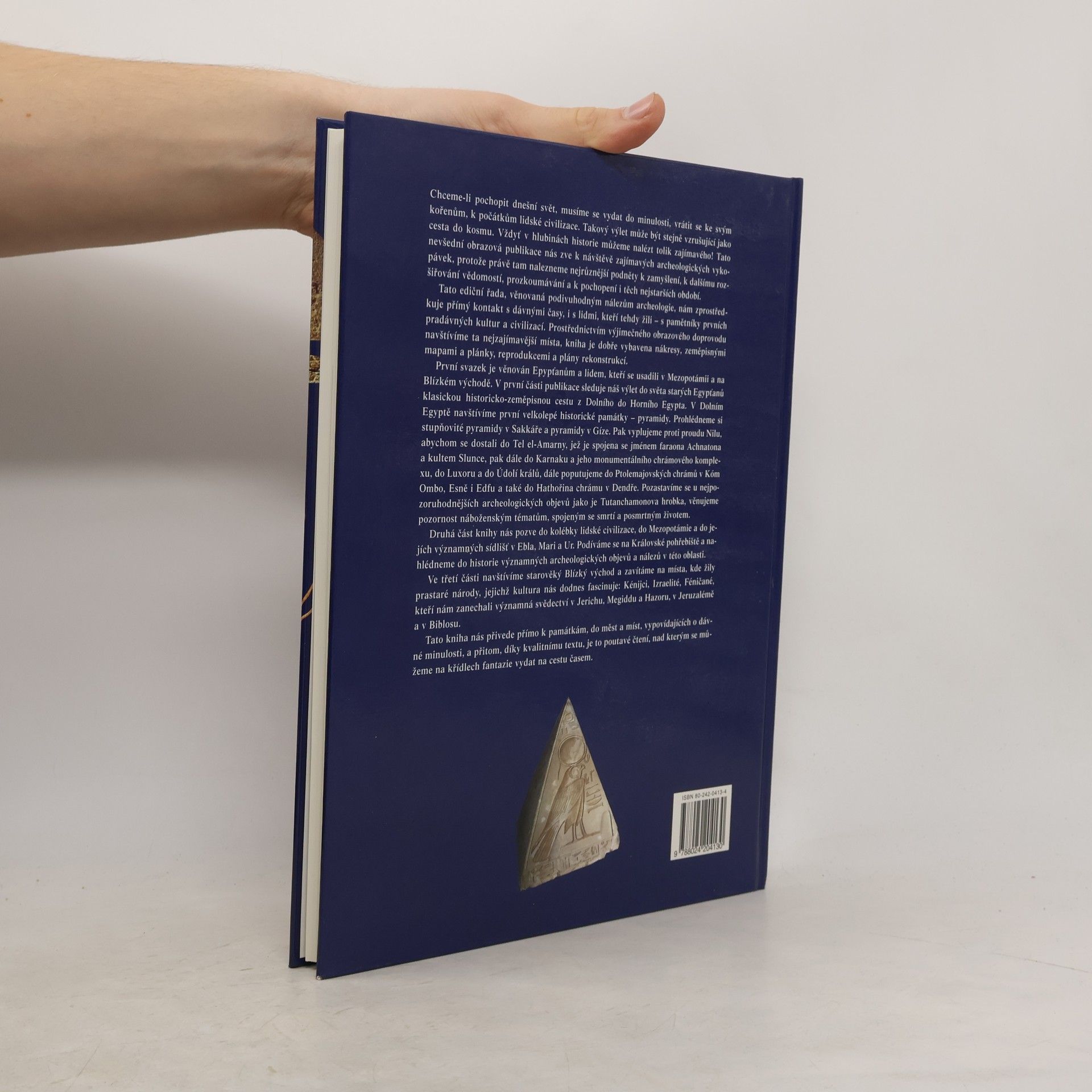 Výpravná obrazová publikace přibližuje významné archeologické památky nejstarších lidských civilizací Egypta, Mezopotámie a Blízkého východu. Publikaci prostřednictvím velmi pěkných barevných fotografií archeologických nálezů, různých kreseb, nákresů i plánků vypovídá o dávné minulosti lidstva. Dozvíme se mnoho zajímavého z historie významných archeologických objevů i o osobnostech kousek po kousku odkrývajících jedinečné památky starověkých civilizací. První, podstatná část knihy je věnovaná památkám Dolního a Horního Egypta - pyramidy, Údolí králů, Tutanchamonova hrobka atd. V další části budeme sledovat archeologické objevy a nálezy v Mezopotámii - Sumerové, Asyřané, Ninive, Babylonie a v oblastech starověkého Blízkého východu - Kananejci, Foiničané, Kumránské svitky atd.