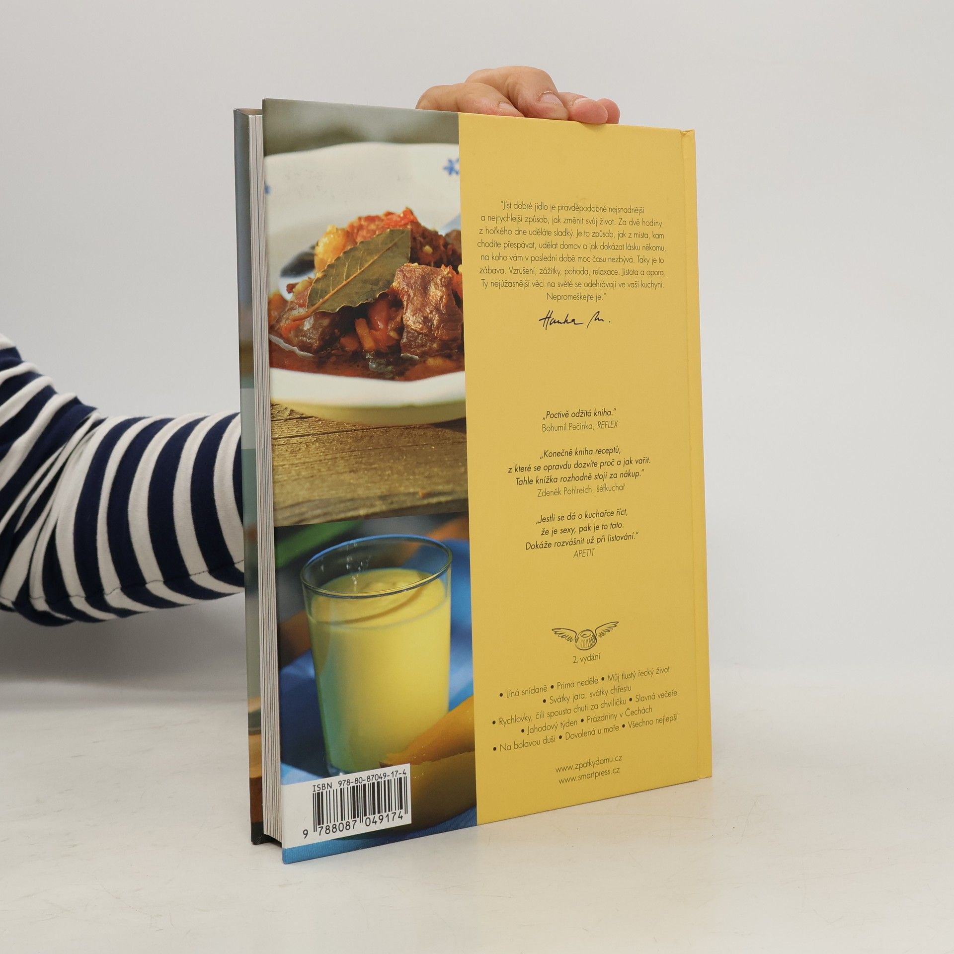 Uvařit dobré jídlo je ten nejsnadnější a nejrychlejší způsob, jak z hořkého dne udělat sladký, jak z místa, kam chodíte přespávat, vykouzlit domov, a jak dokázat lásku těm, na nichž vám záleží. Hanka Michopulu, zakladatelka časopisu Apetit, s tím má svou zkušenost – opustila úspěšnou kariéru a vrátila se na čas domů, ke své rodině a do své vlastní kuchyně. A pak napsala tuto kuchařku, aby i vám pomohla co nejlíp si užívat života. Její knížka přináší snadné a vyzkoušené recepty pro různé příležitosti, například víkendové snídaně, slavnostní večeře, ale i vaření na dovolené nebo narozeninové pečení. Bude vás provázet od nákupu kvalitních surovin až po výsledek - spokojené chvíle. Je to kuchařka pro lidi, kterým chybí opravdové domácí jídlo, ale přitom žijí a pracují v české realitě třetího tisíciletí. Potřebujete nové recepty a nové nápady? Musí být dobré, snadné, pořádně vyzkoušené a z dostupných ingrediencí? Přesně taková je Kuchařka Zpátky domů. Bůhví, kam všude vás vaše vaření zavede. Třeba pro vás bude taky cestou zpátky domů...