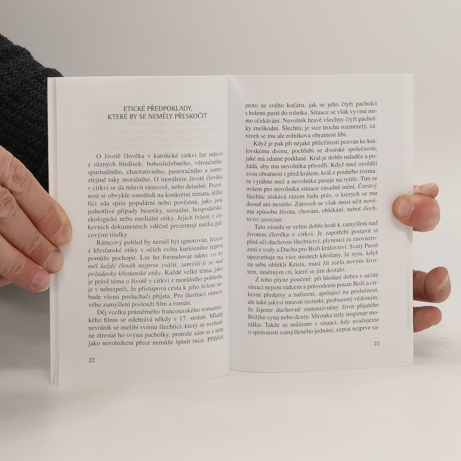 Když se teologie zabývá lidským tělem a tělesností, ptá se ve skutečnosti na to, jaký má Bůh záměr se svým stvořením a co to znamená být člověkem. Úvahy známého českého morálního teologa přibližují křesťanskou morálku jako záležitost osobně-individuální i společenskou. Křesťanská etika vyrůstá z vědomí, že dobrý život je odpovědí na nabídku jedinečného Božího přátelství. Reálné problémy nemůžeme zjednodušovat ani vytěsňovat, zvláště jde-li o otázky lidské tělesnosti a manželské lásky. Podle našeho autora jsme spíše povolání "sladit pohled sebe s pohledem nad sebe". Napětí mezi schopností člověka překročit sám sebe a sklonem propadnout sám sobě přitom zůstává. Jiří Skoblík spojuje klasický pohled na křesťanskou morálku se schopností zdravě provokovat a vytrhávat čtenáře z povrchního přístupu.